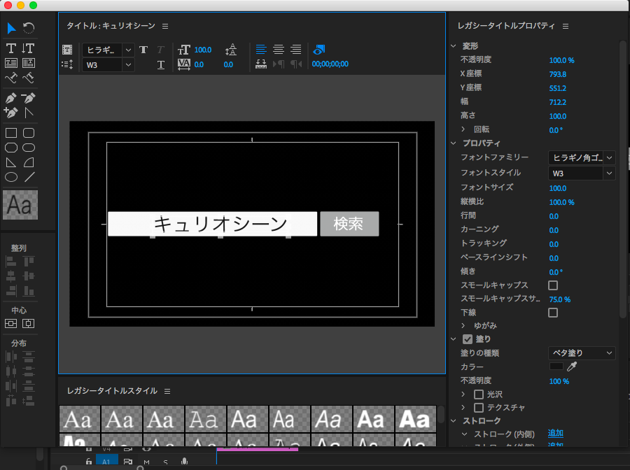 CS6などのバージョンを利用している場合は「タイトル(CCはレガシータイトル)」を選択して、検索窓内の文字を入力します。