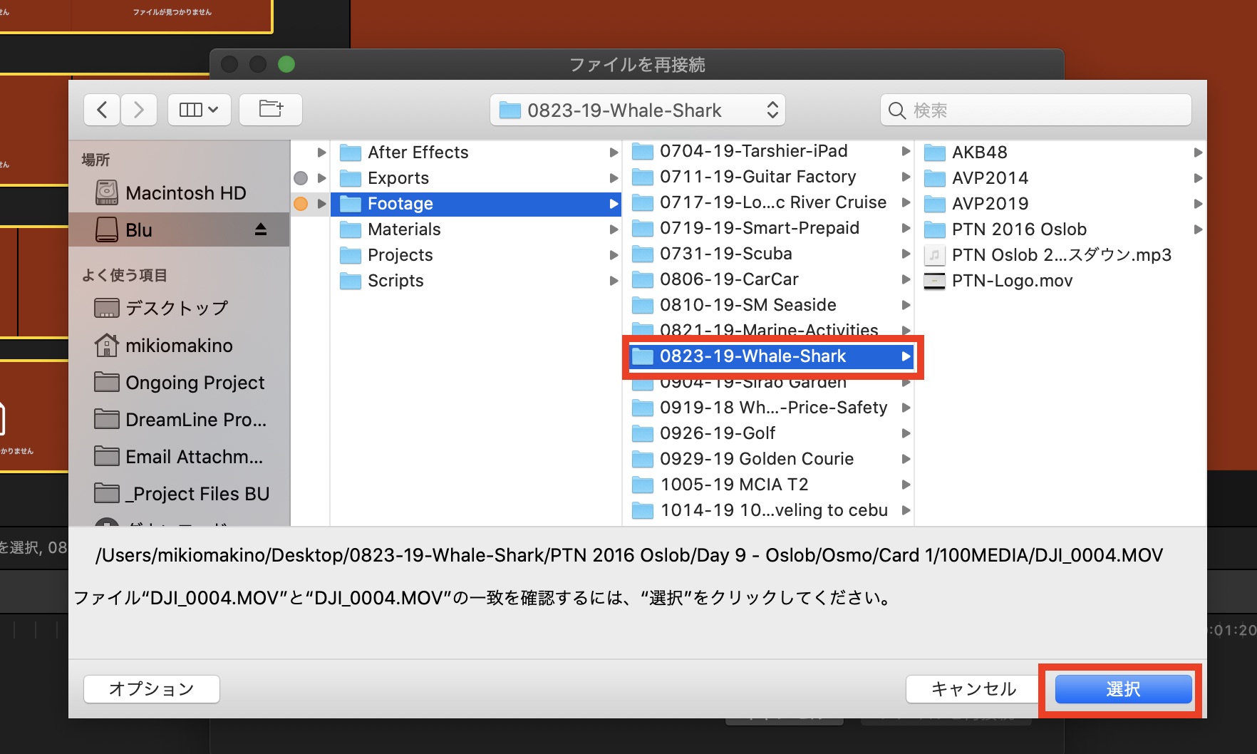 しかし、「ファイルをそのままにする」を選択し、元の保存先から別のディレクトリに移動すると、メディアオフラインになってしまうので注意しましょう。
