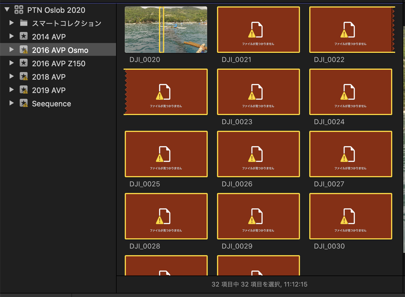 メディアが再接続されていないがある場合はサイドバーにあるイベントに「!」のアイコンが付きます。このアイコンが表示しなくなればライブラリ内のファイルは全て再接続されたことになります。