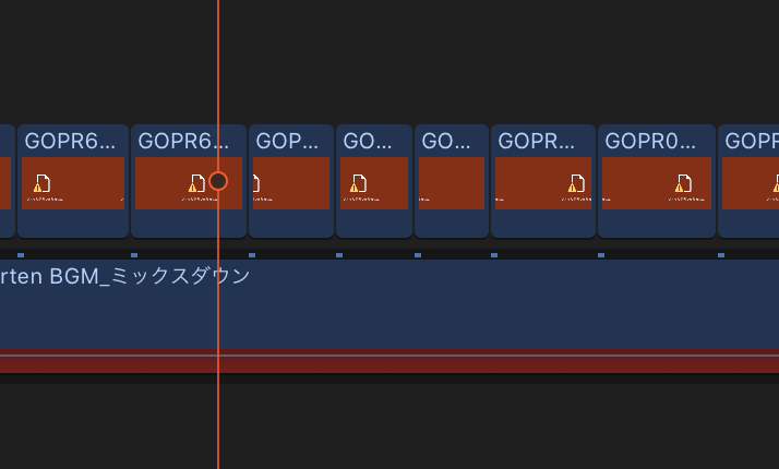 この状態だと映像の再生はおろか書き出しも行えないので、編集を再開する前に全てのクリップを再接続させる必要があります。