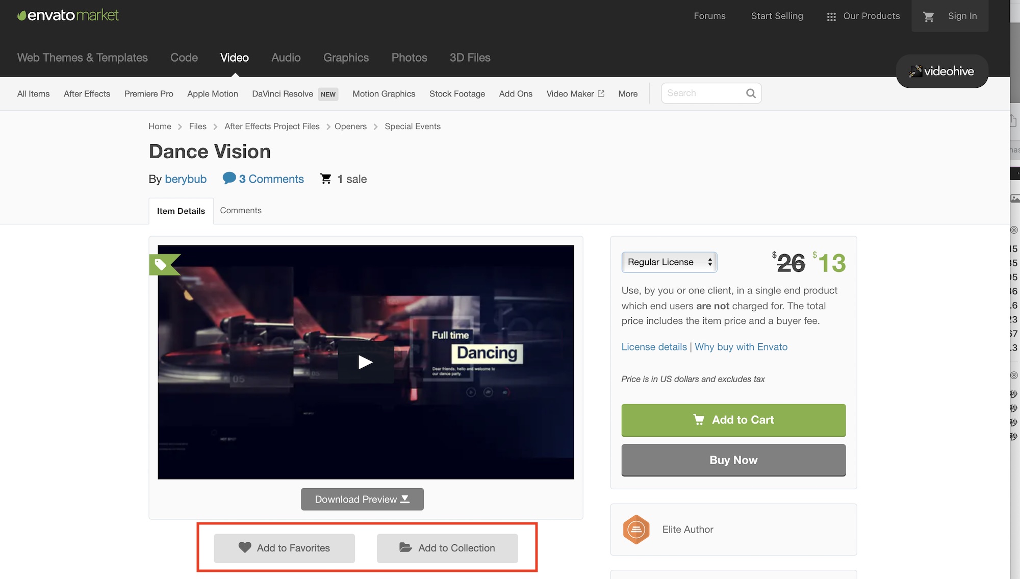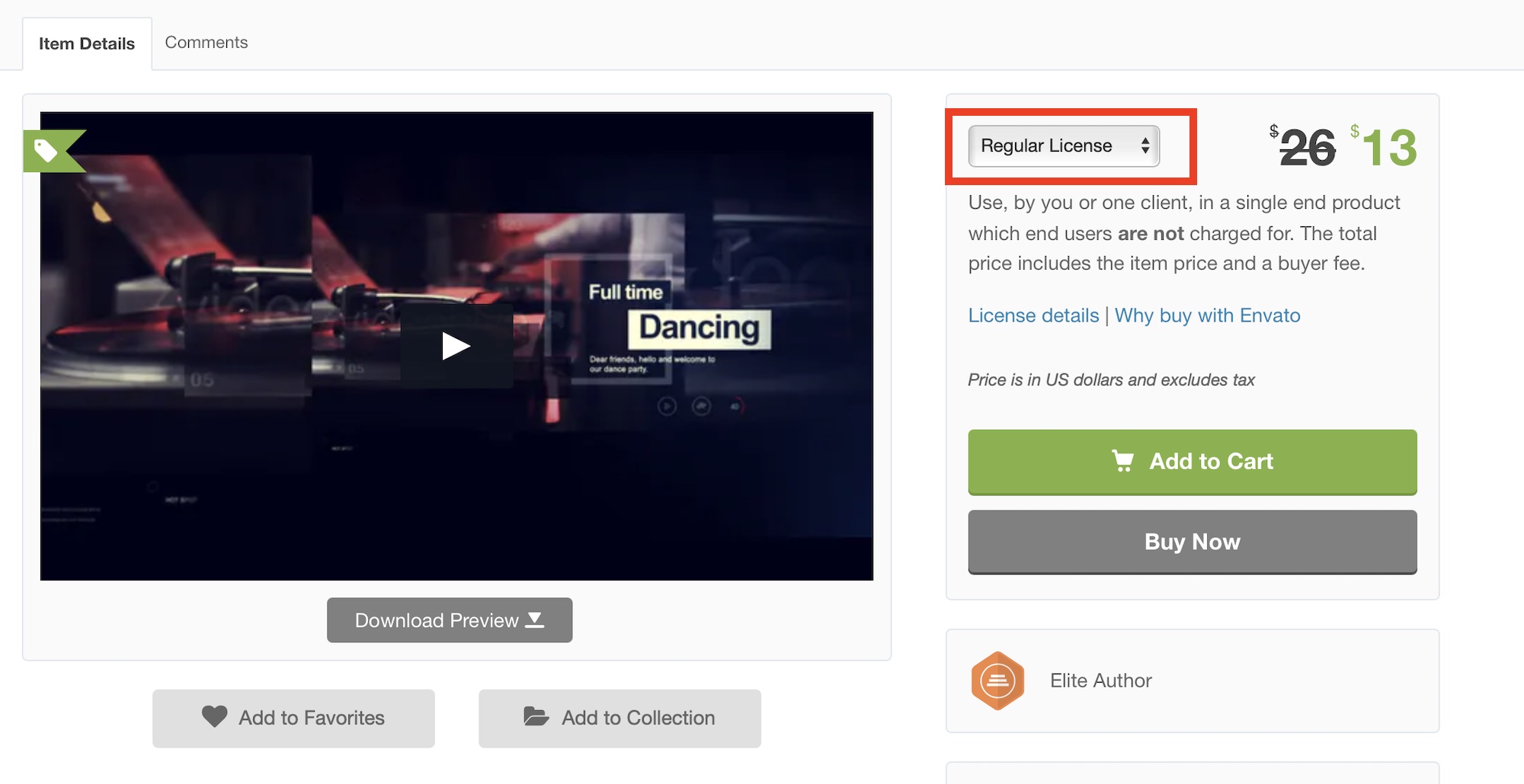 ライセンスを選択した後はEnvato Marketでアイテムを購入してみましょう。アイテム詳細ページにある「Add to Card(カートに追加)」または「Buy Now(今すぐ購入)」をクリックします。