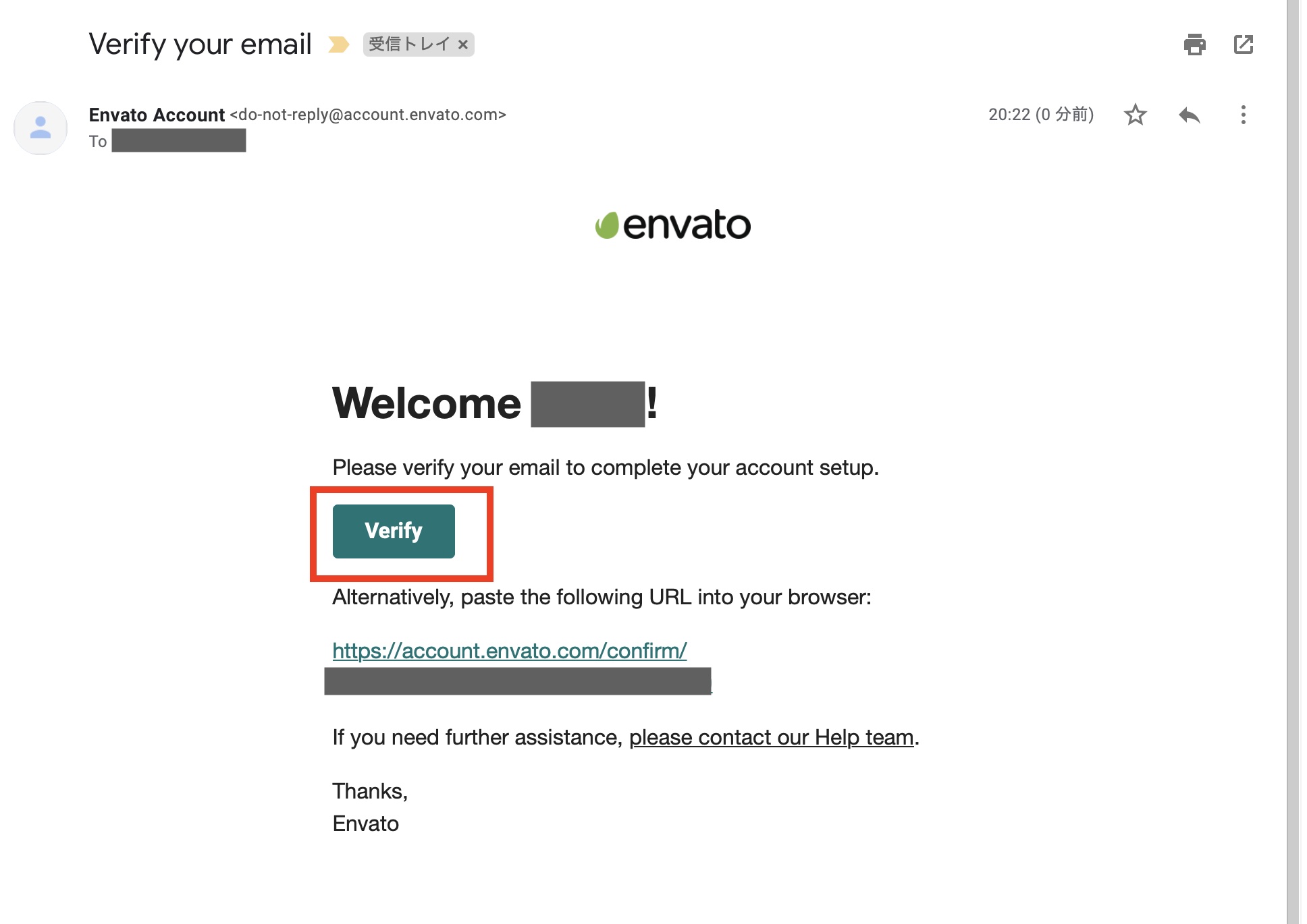 ユーザー登録を済ませたらトップページに転送されますが、メールアドレスの確認を行う必要があるので、メールの受信箱から「Verify your email」を開き、その中にある「Verify」または下にあるURLをクリックしましょう。