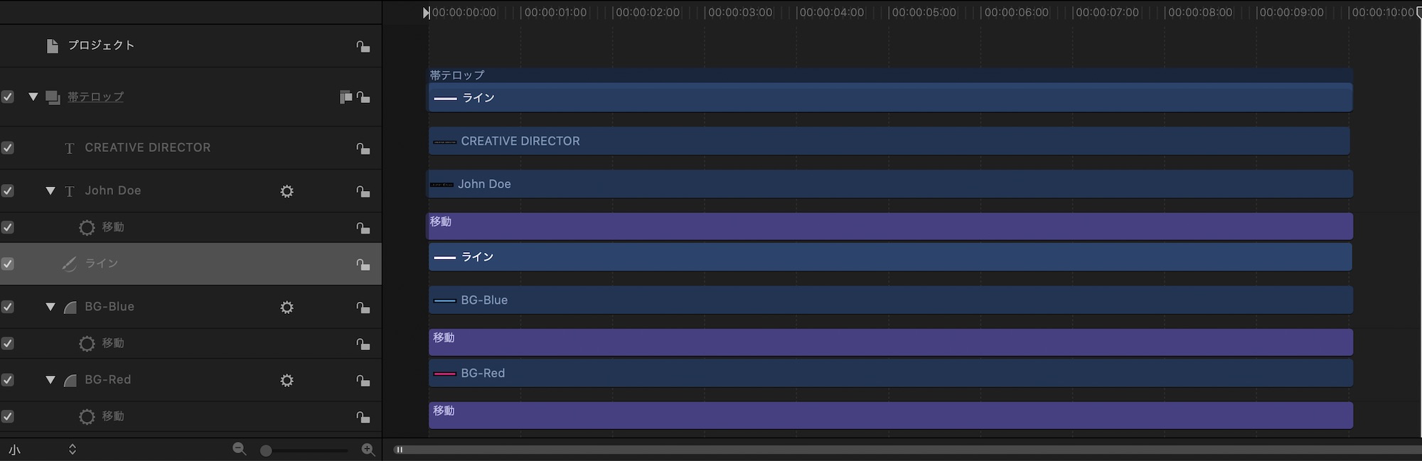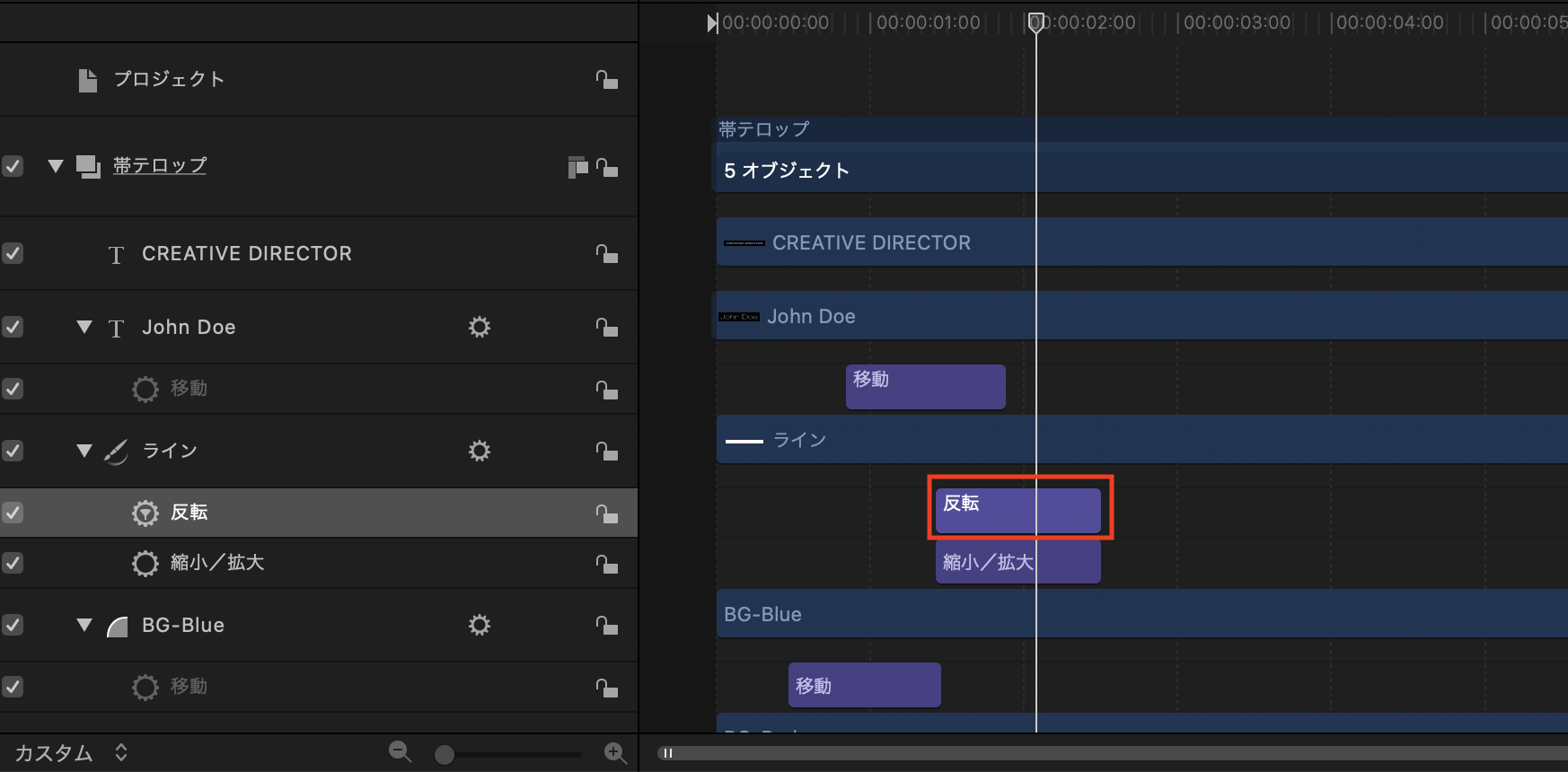 ひとまずここまでで帯テロップのアニメーションが完成しました。