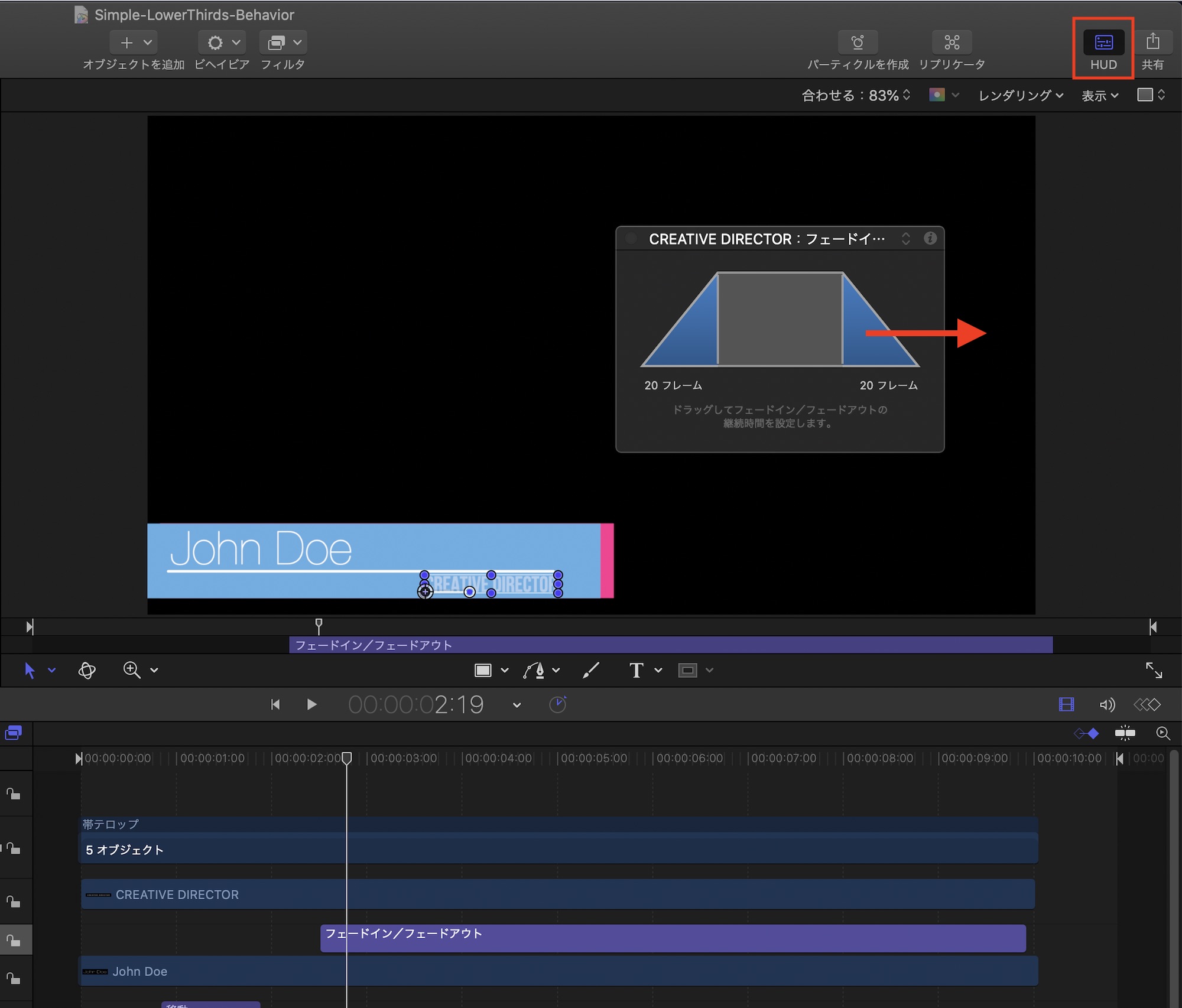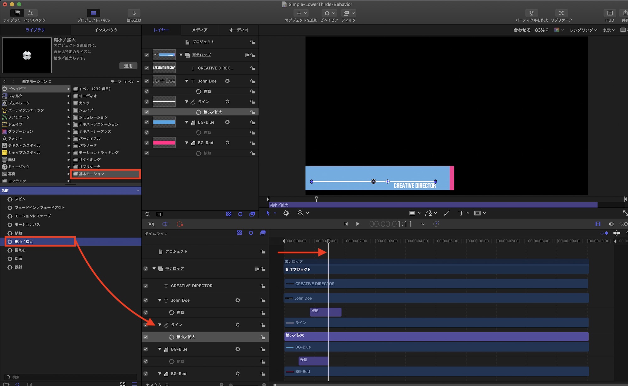 [Motion 5] ビヘイビアを使ってオブジェクトを動かして、帯テロップのアニメーションを完成させよう!