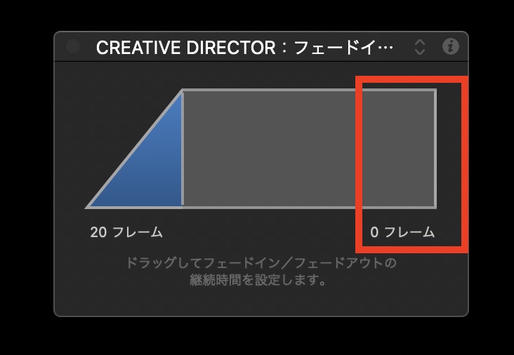 HUDを使ってフェードアウト部分を右にドラッグしてフェードアウトを無効にしましょう。