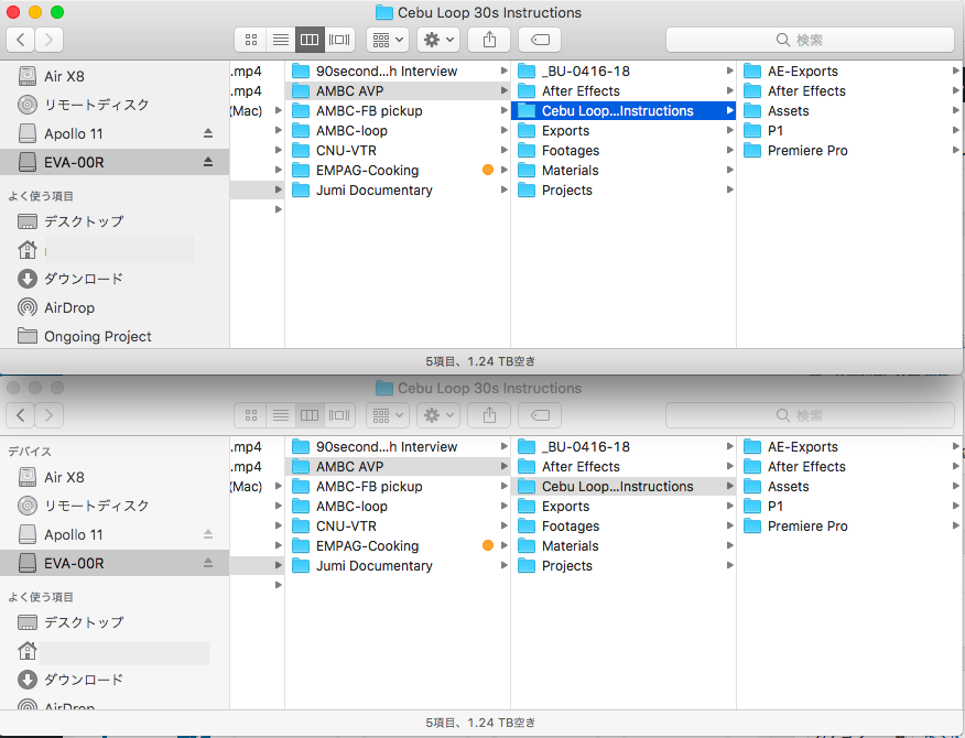 編集中は特に問題ないけれど、オフラインになると厄介なのがフッテージやグラフィックス、写真など編集に使用する素材が外付けHDDのみならず、デスクトップやダウンロードのフォルダーに分散しているということ。