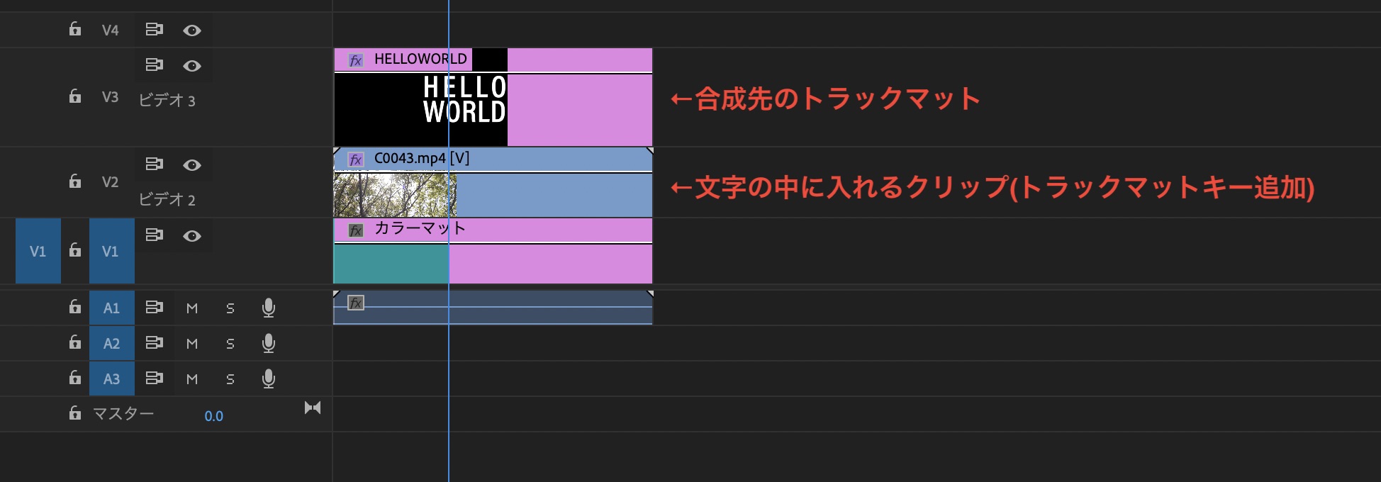 一度合成したトラックマットとクリップのレイヤーを移動する場合、合成が無効化されてしまう可能性があるのでクリップの移動を行い際は注意しましょう。