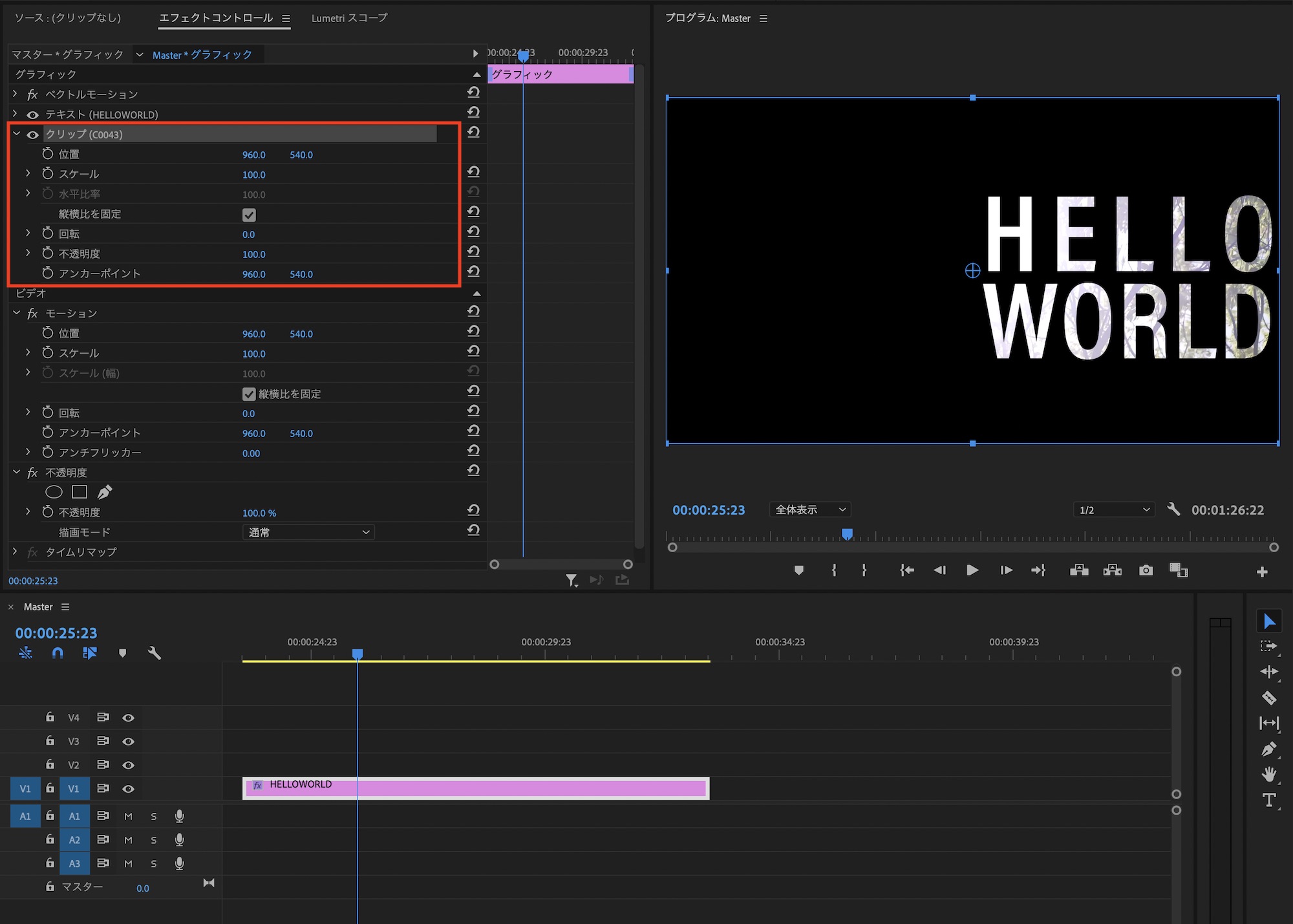 エフェクトまたはエッセンシャルグラフィックスを使った場合でも基本的に操作は同じですが、変更を行う場所が異なるので注意してください。