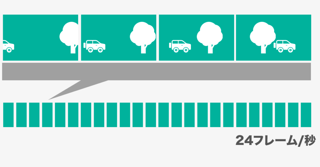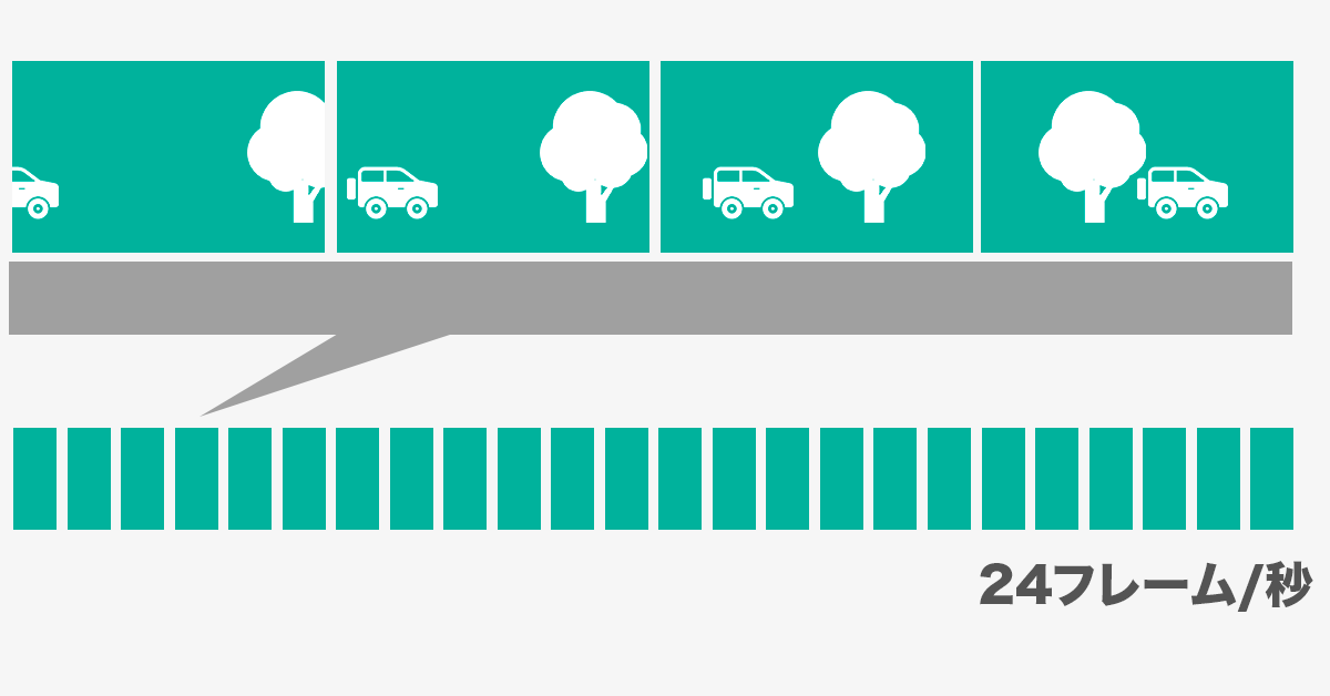 映像制作において一コマの事をフレームと呼ぶのですが、1秒間に流すフレーム数によって映像の滑らかさが変わり、現在主流になっているのは24fps、30fpsまたは60fpsです。fpsはフレーム毎秒(Frame Per Second)と言い、フレームレートを表す単位になっています。