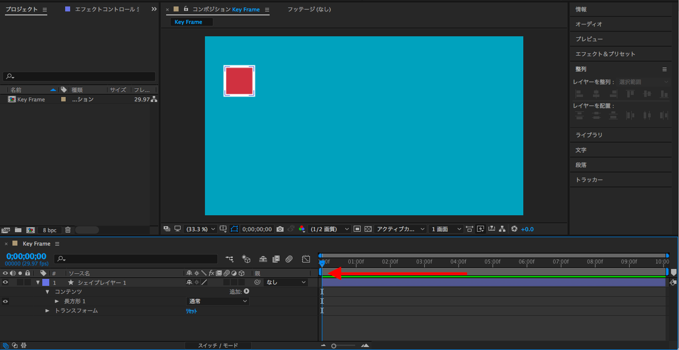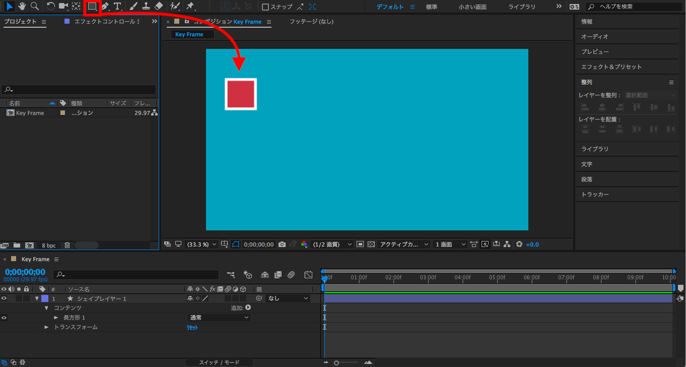 [After Effects] アニメーションの基本!キーフレームを使ってシェイプを動かしてみよう
