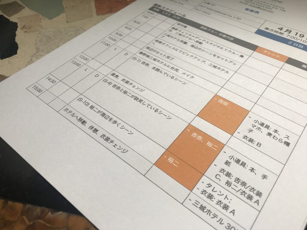 プロダクションをスムーズに動かすために必要な香盤表(Daily Call Sheet)ってなんだ?