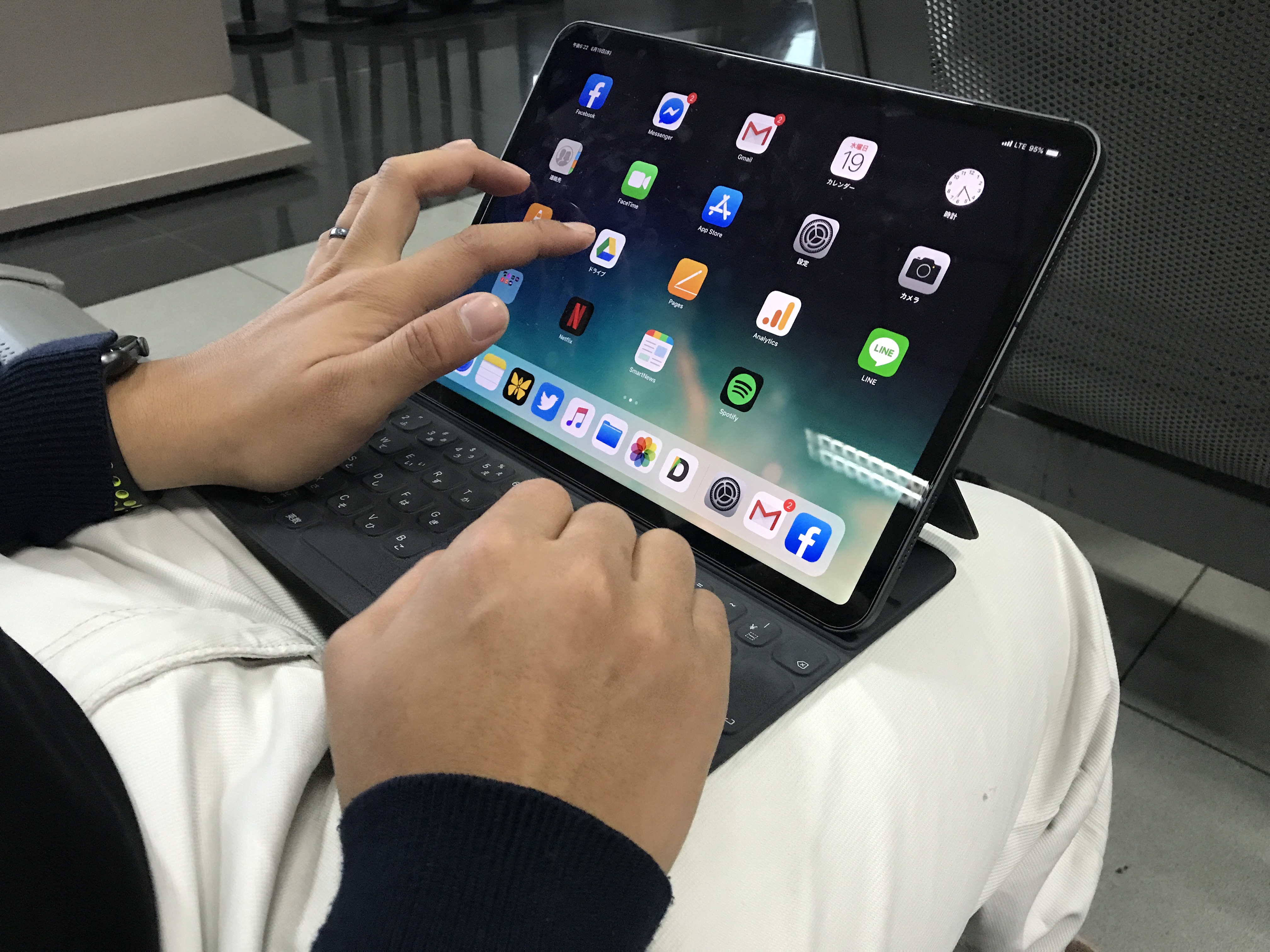 使用するアクセサリーも考えておきたい要素の一つ。Apple Smart Keyboardを例にしてみると、コンパクトでデザインに申し分は無いキーボードではあるものの、膝の上では打ちにくく、ノートパソコンのようには使用できませんでした。