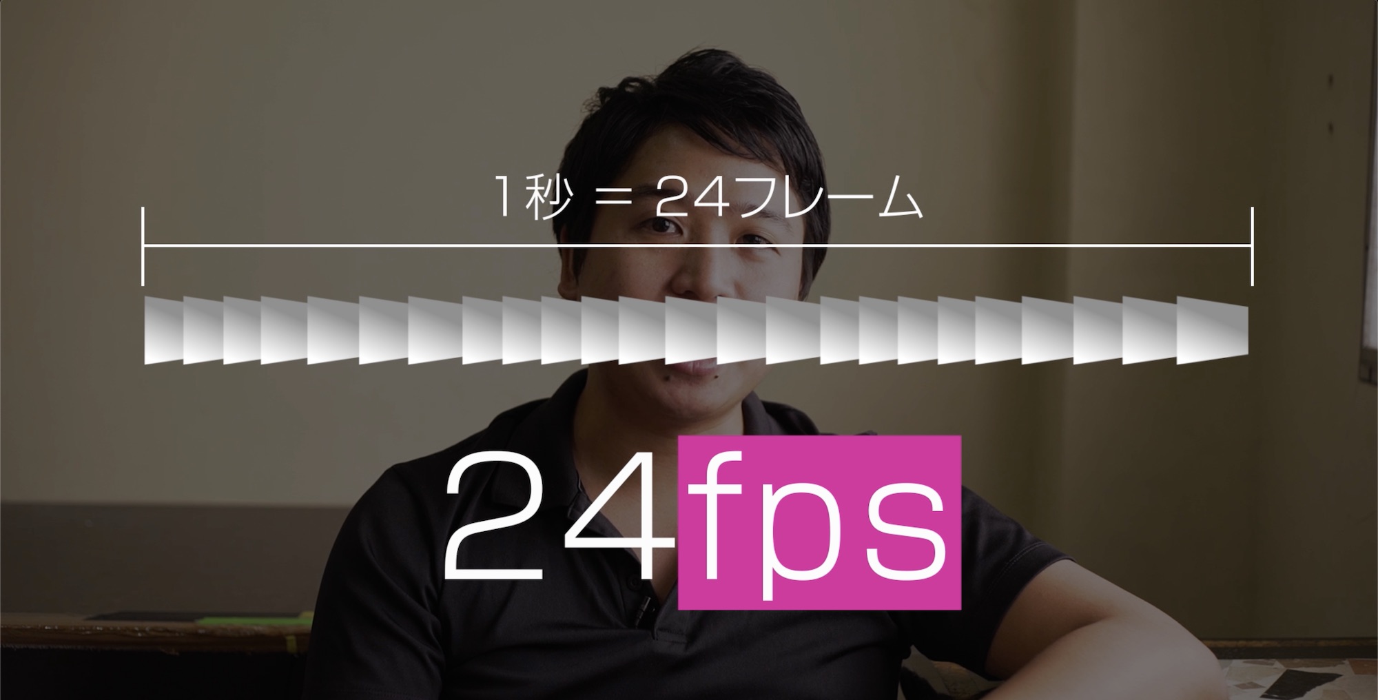 フレームレートとは1秒間に何コマ(fps=frames per seconds)あるかを表すもので、映像制作において重要な要素の一つ。