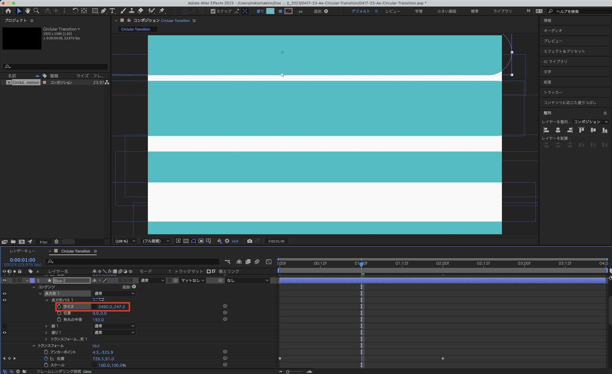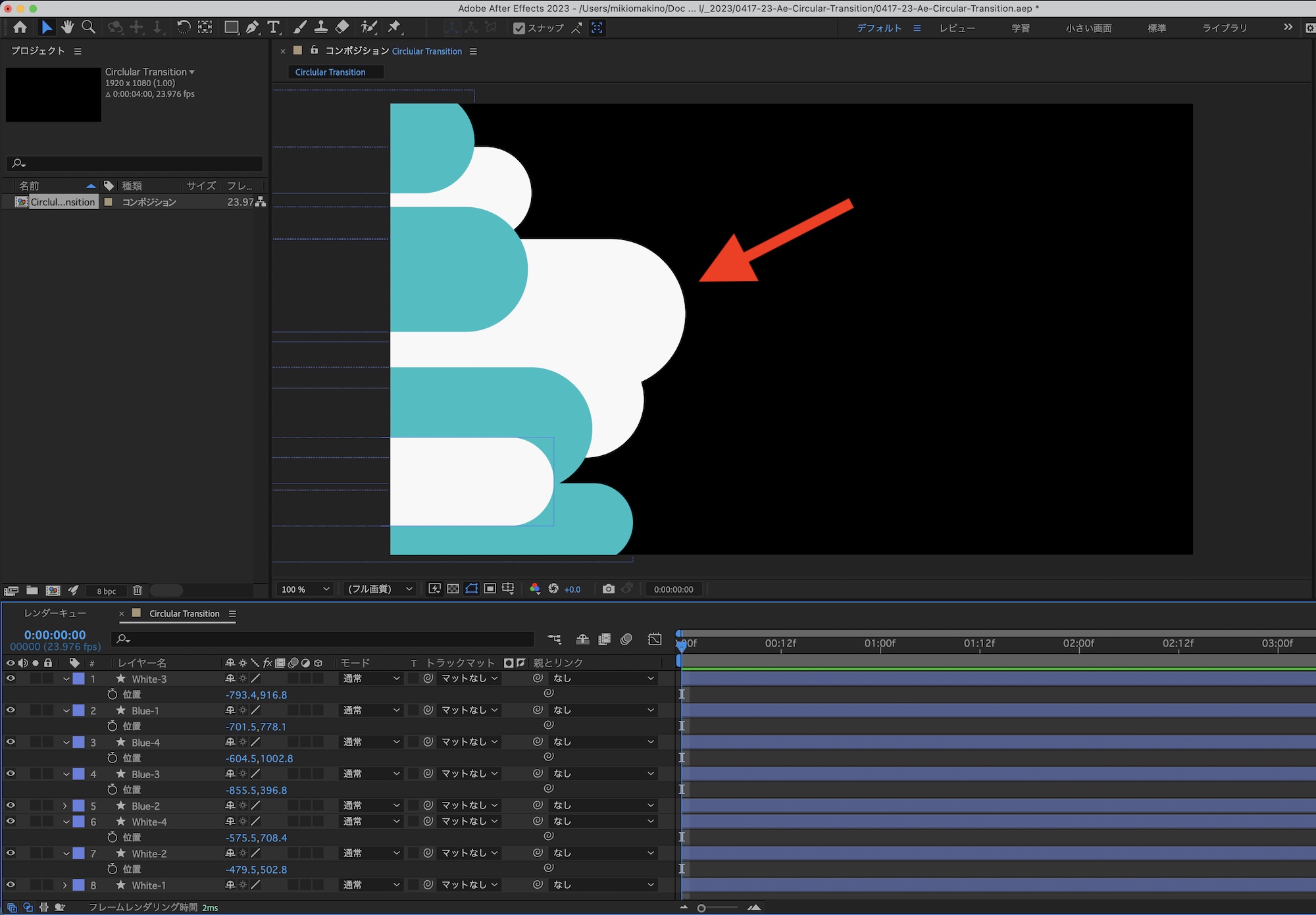 [After Effects] 丸みのあるシェイプがフレームを横切るトランジションを作成してみよう!