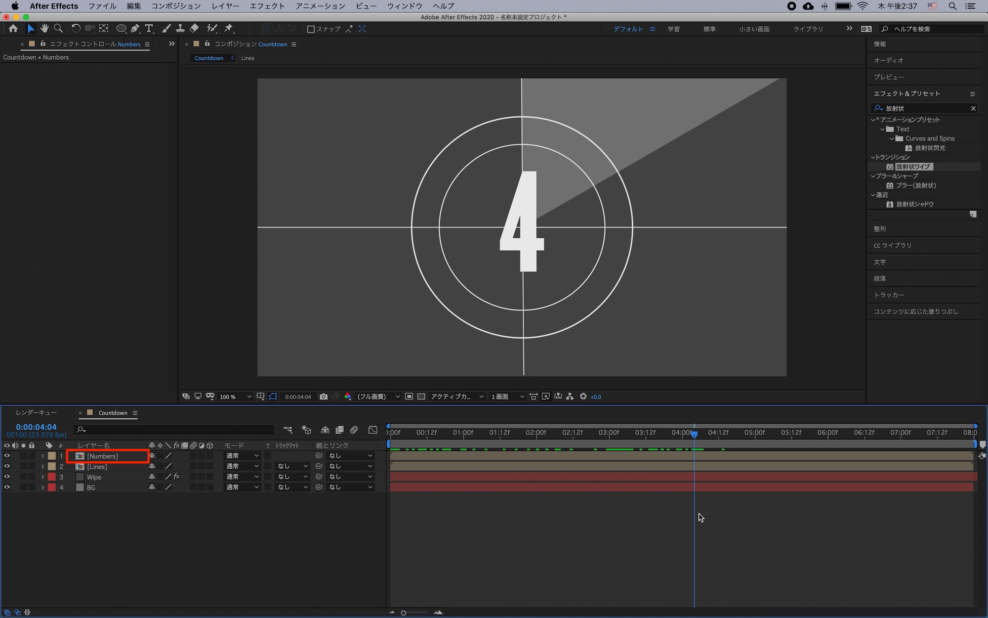 最後は数字のレイヤーを全て選択してプリコンポーズすれば完成です。名前は「Numbers」に変更しました。