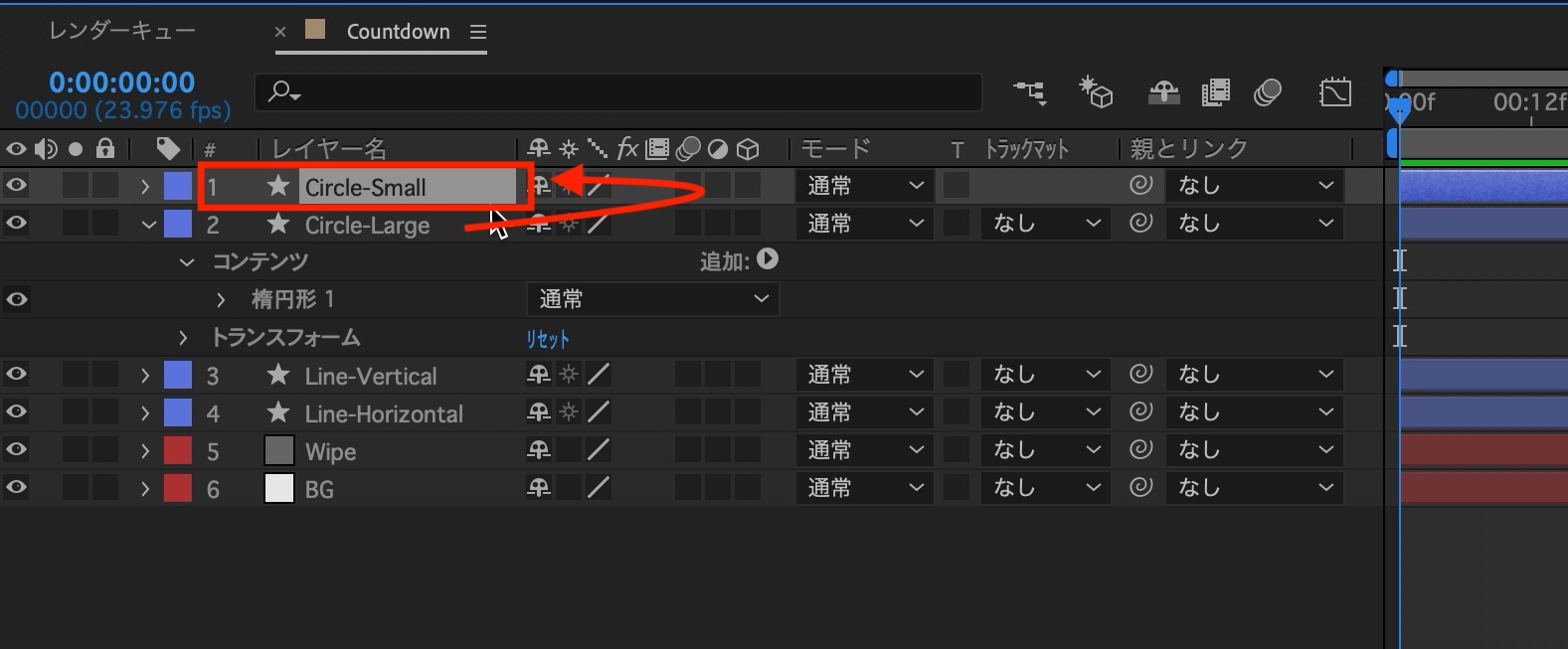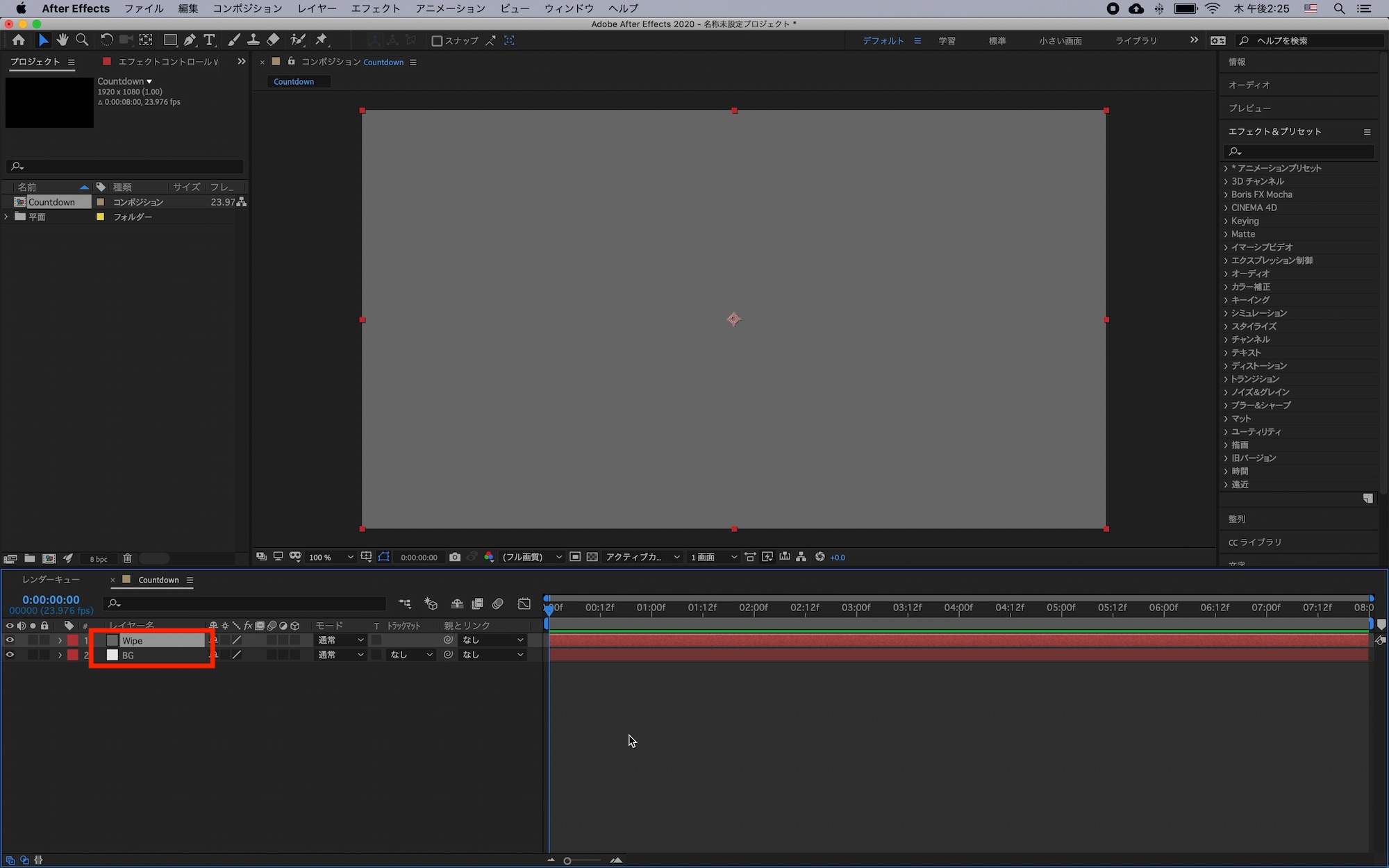 背景となる平面は「BG」と名称変更し、カウントダウンで使用する平面は「Wipe」というレイヤー名にしています。
