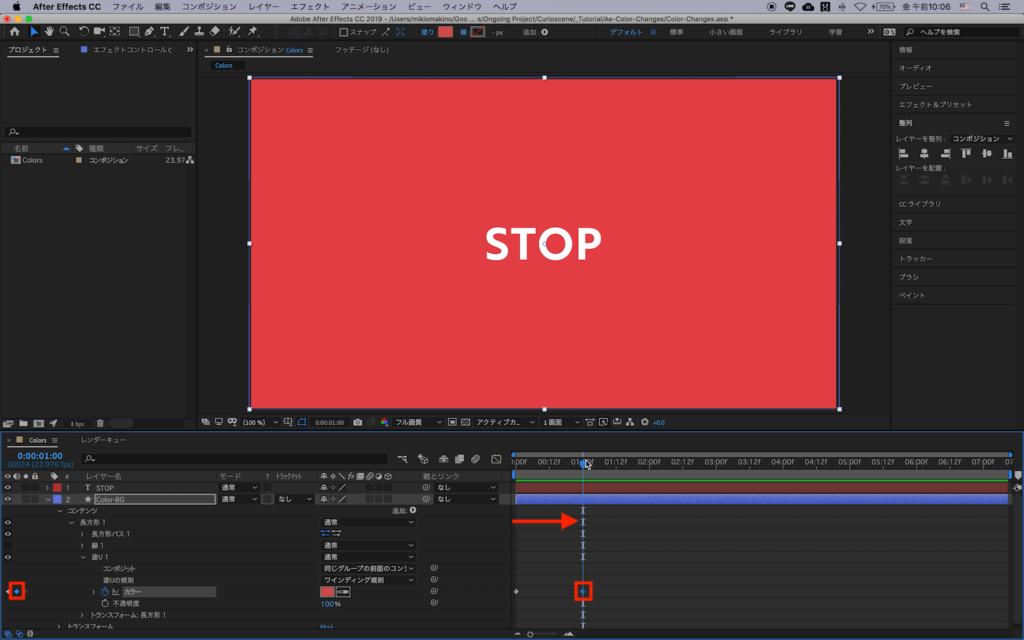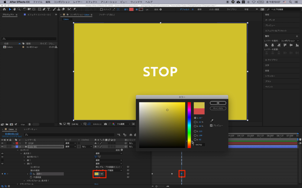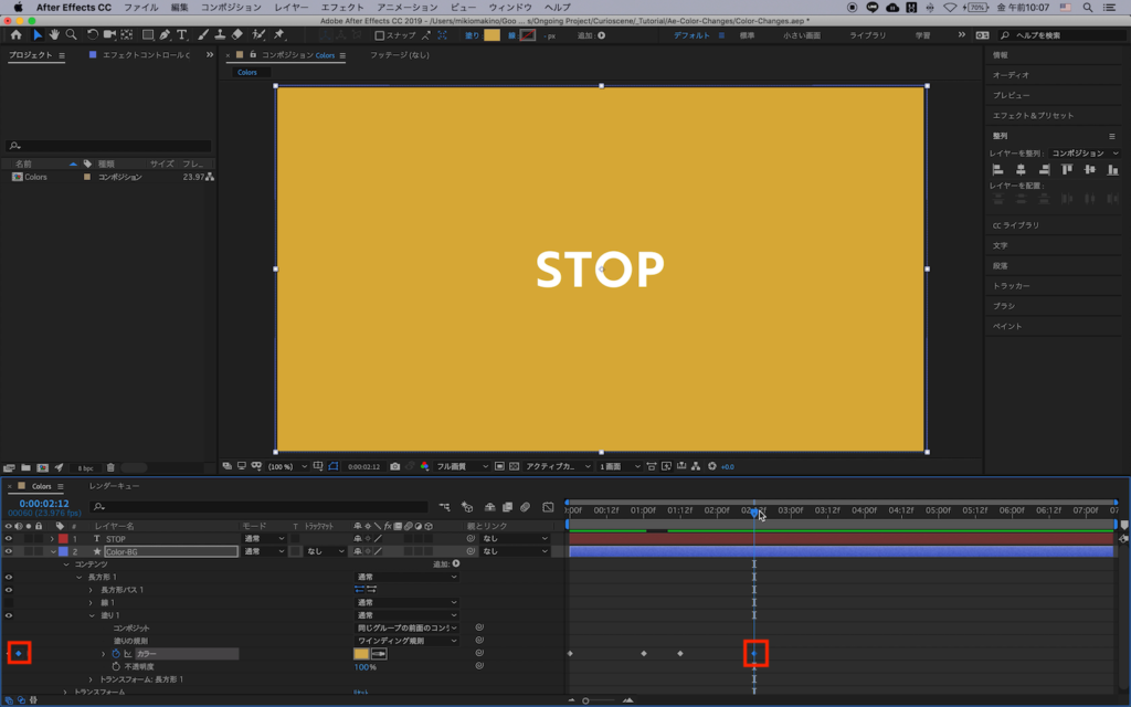 [After Effects] シェイプなどの塗りの色をスムーズに変えていく方法