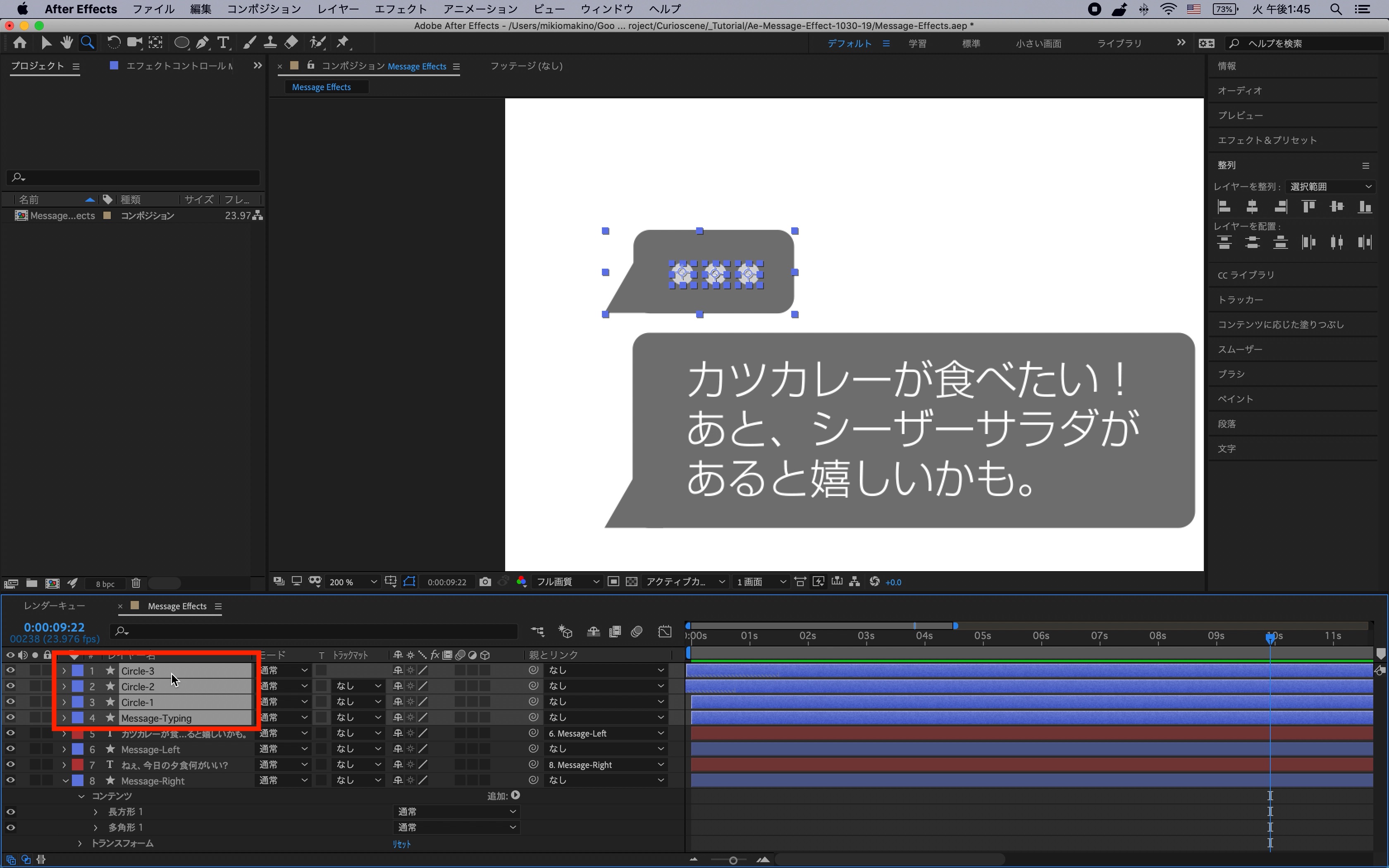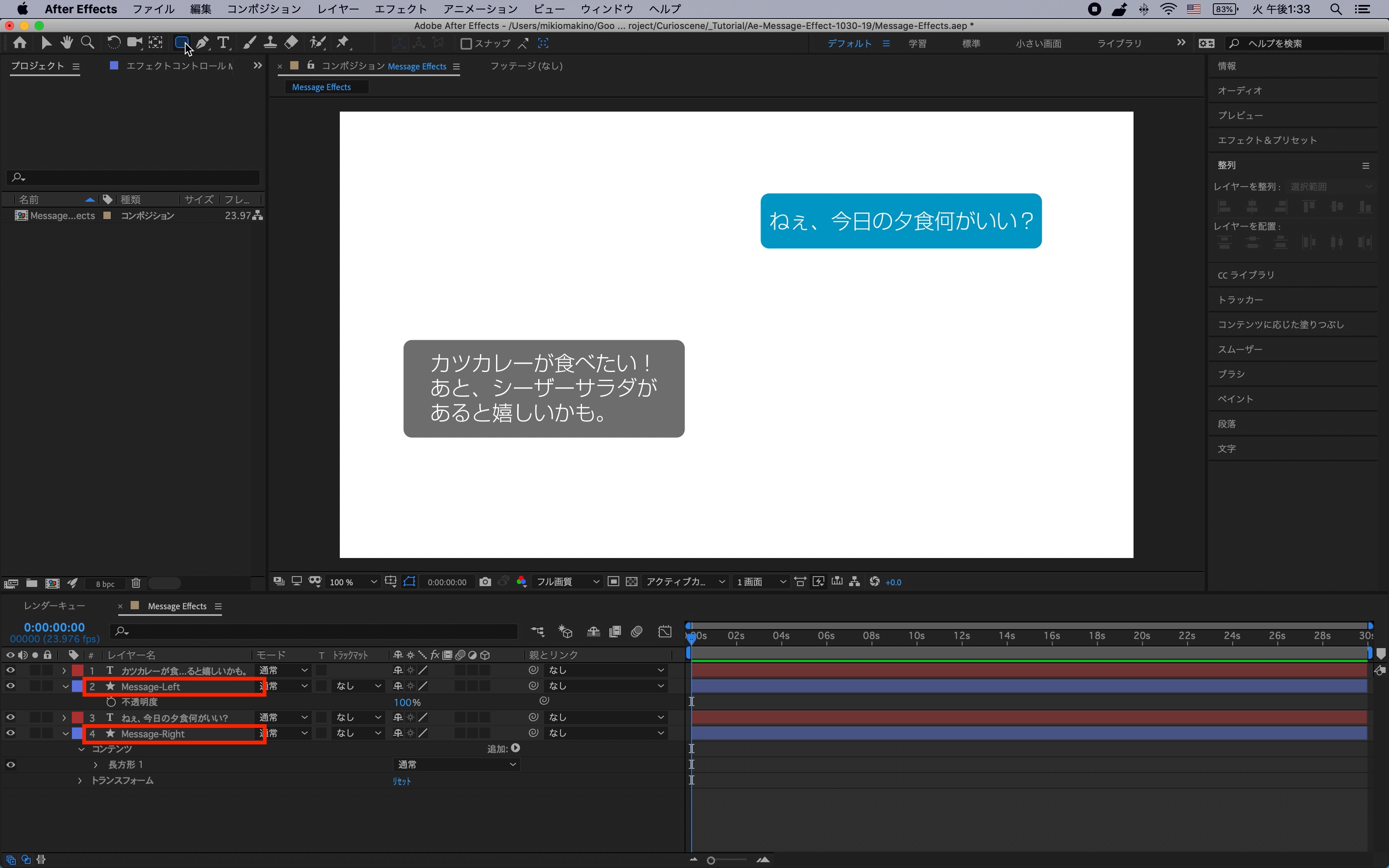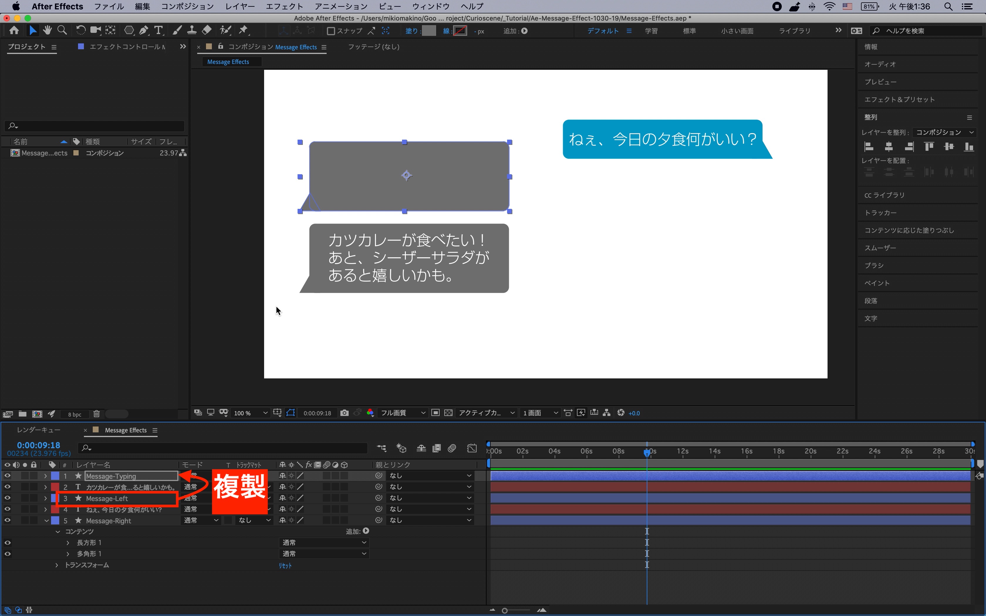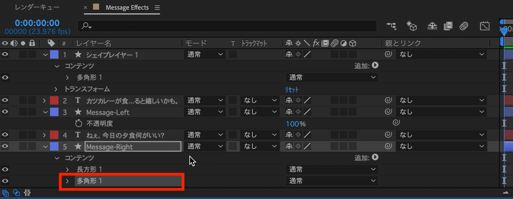 シェイプレイヤーはわかりやすく「Message-Right」、「Message-Left」と名称を変更しておくと良いでしょう。