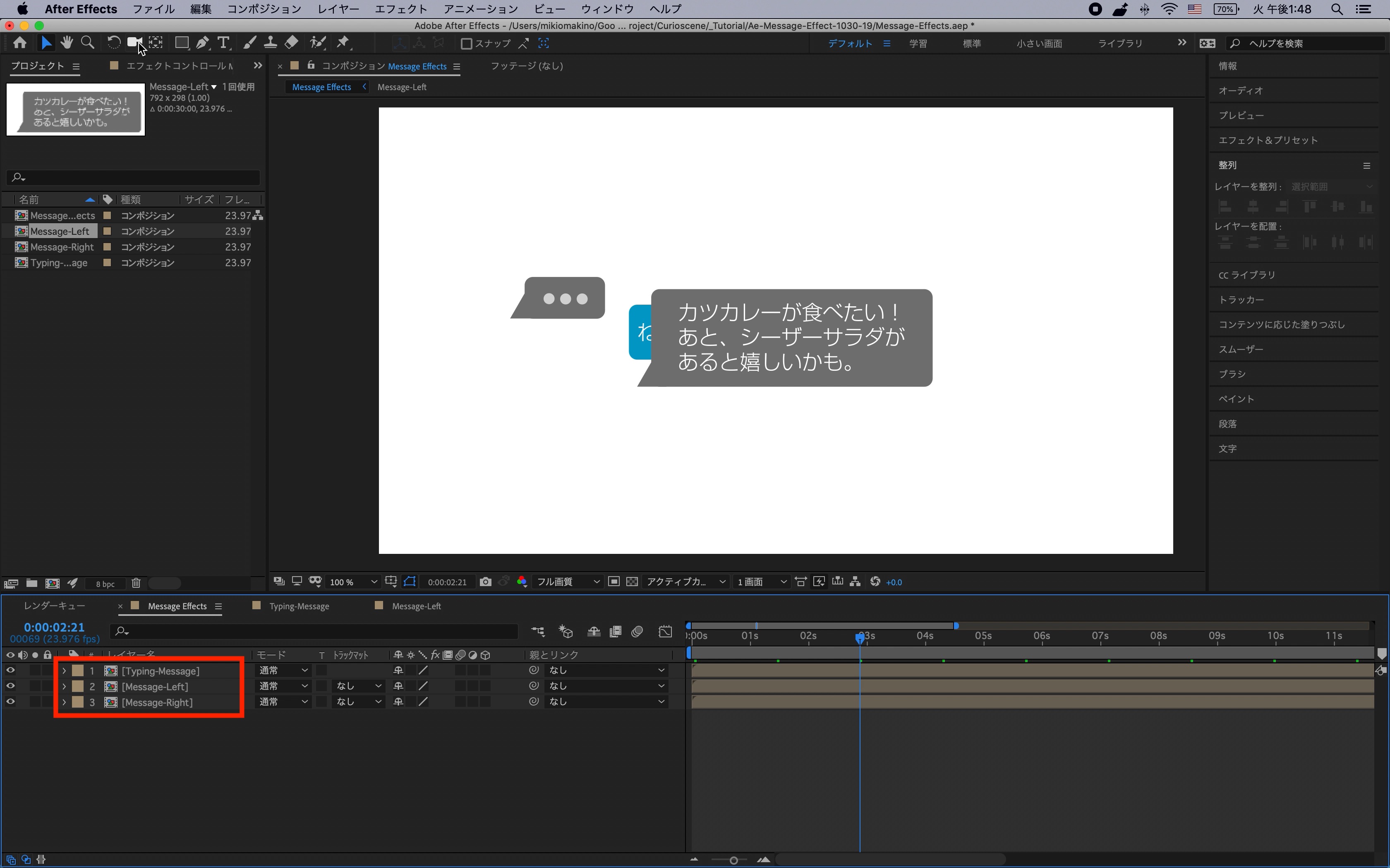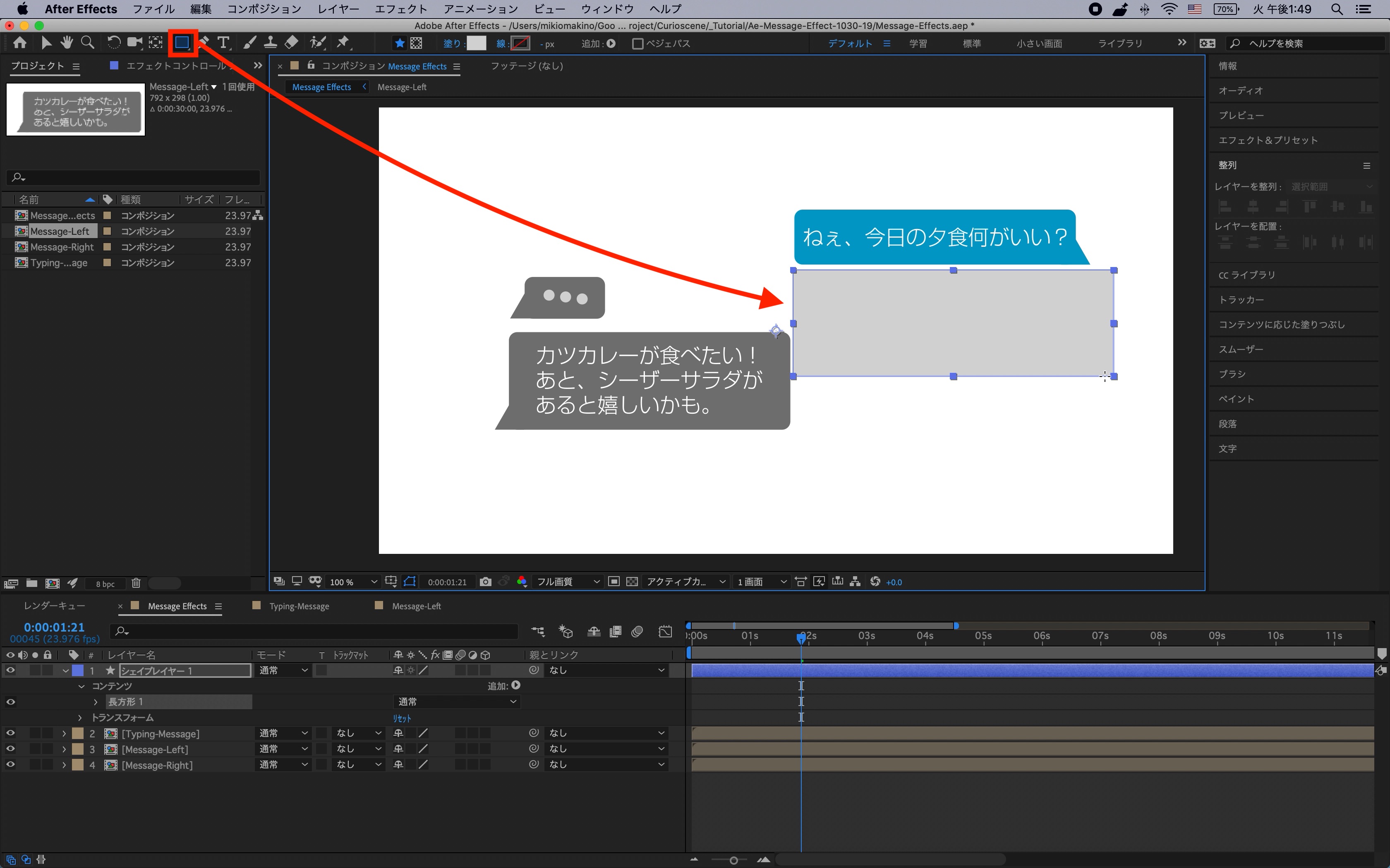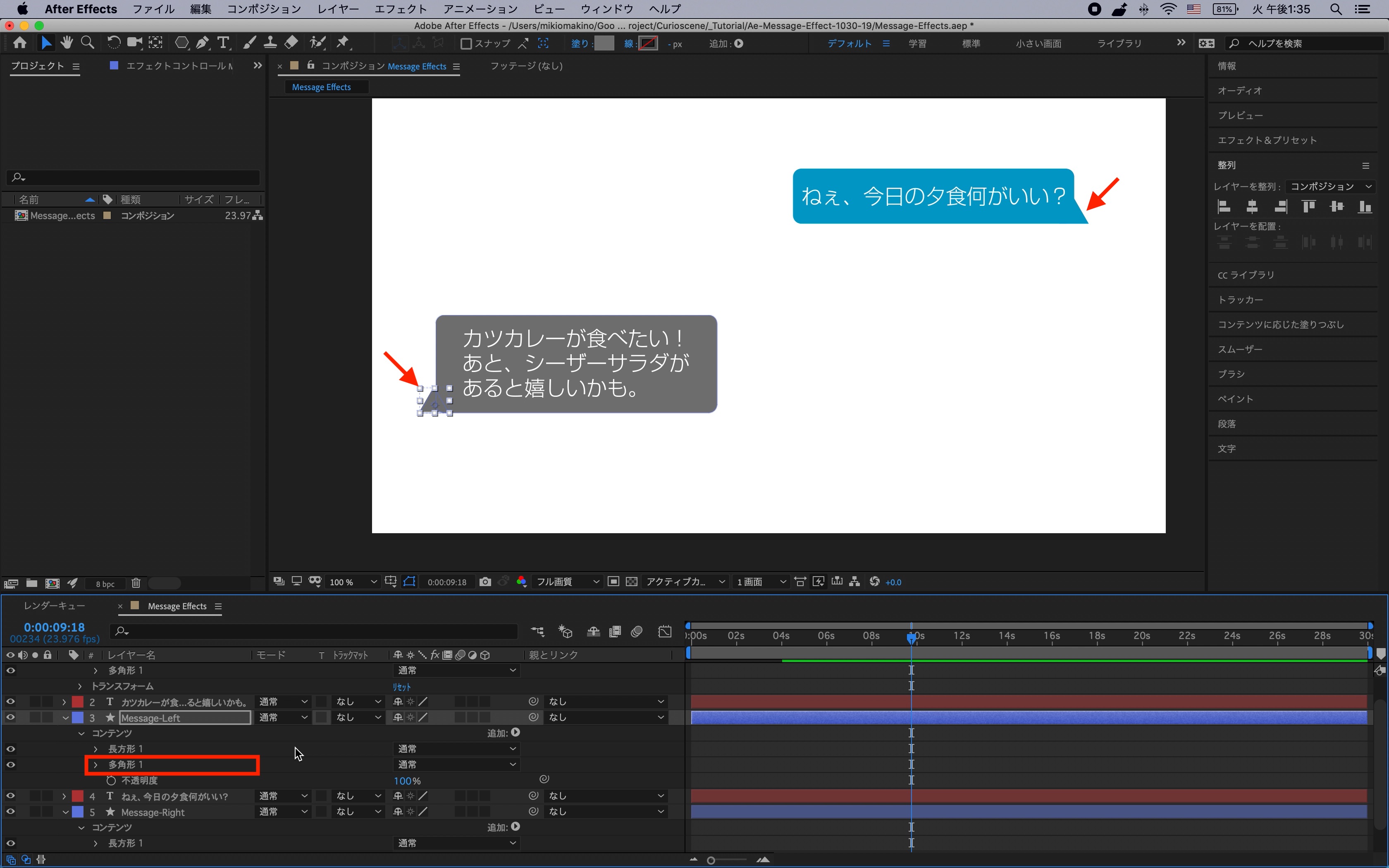 シェイプレイヤーはわかりやすく「Message-Right」、「Message-Left」と名称を変更しておくと良いでしょう。