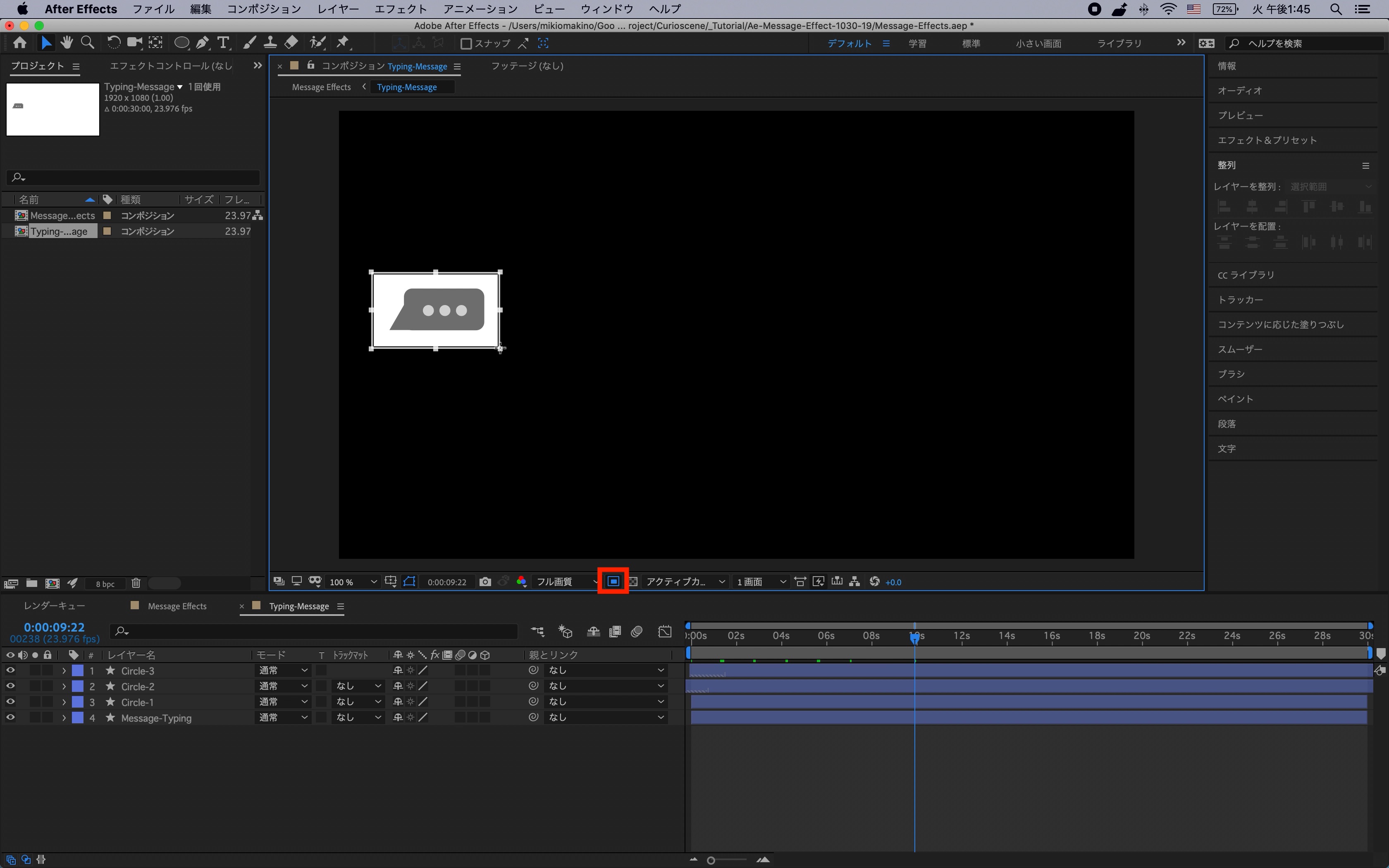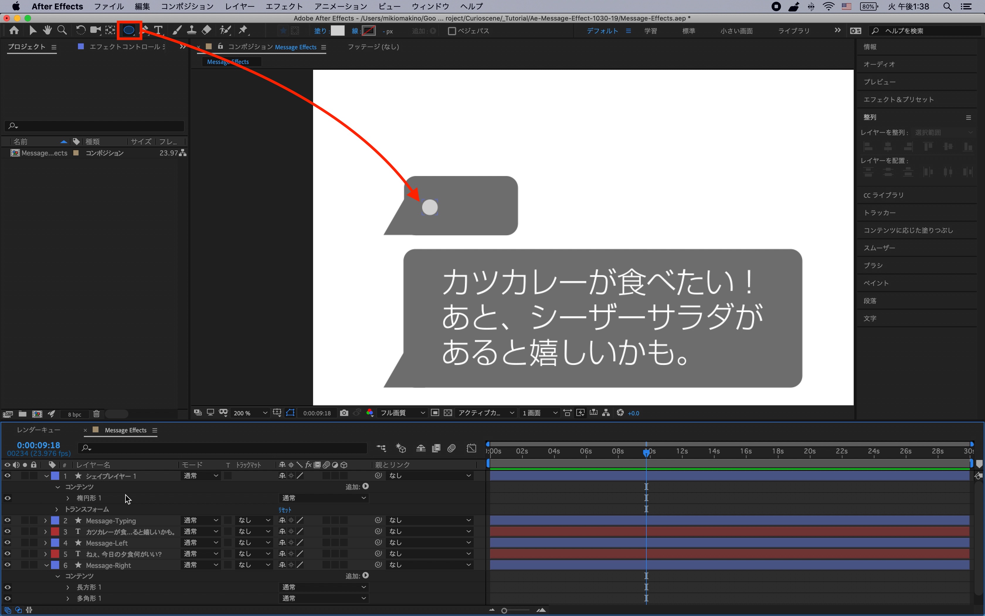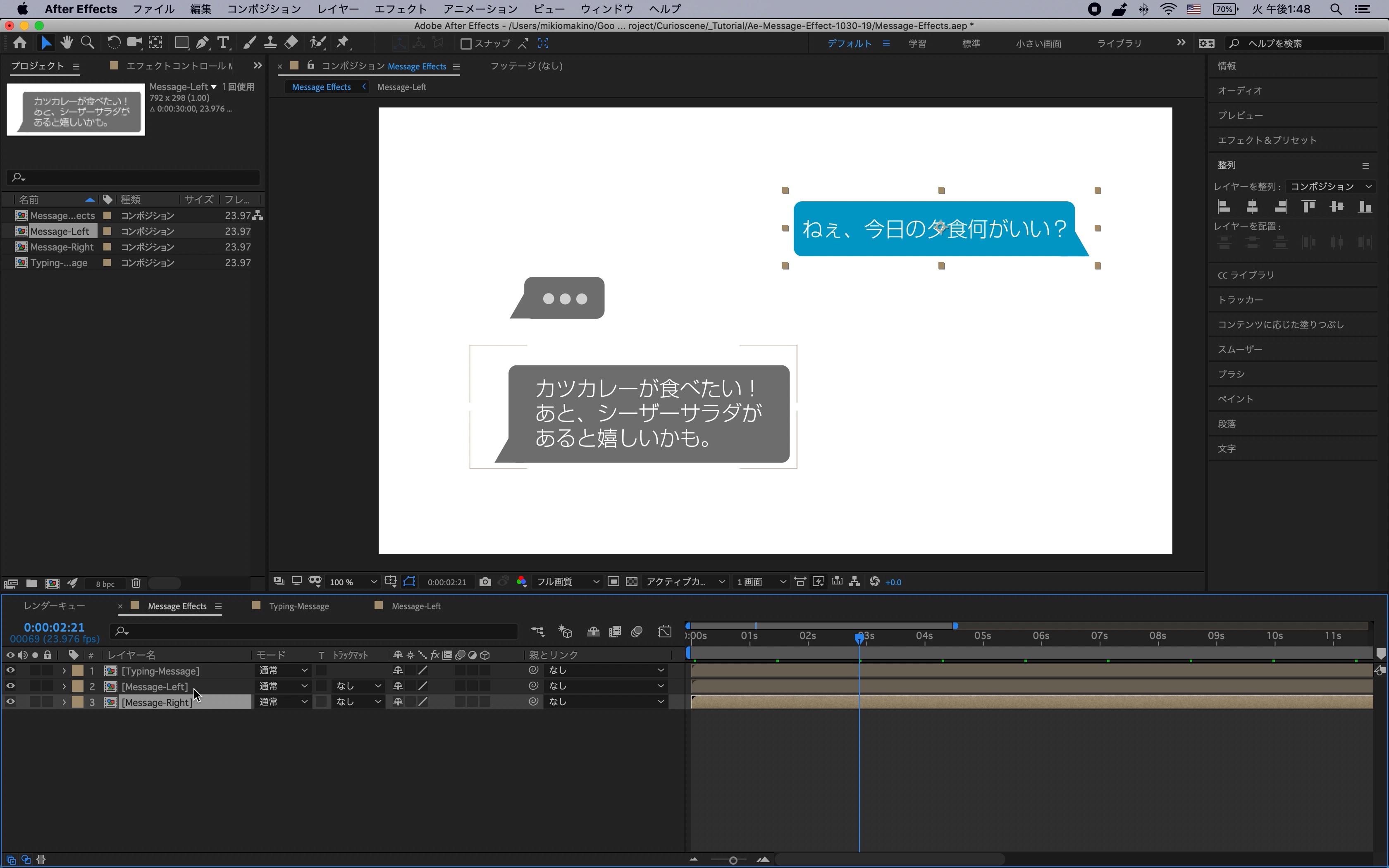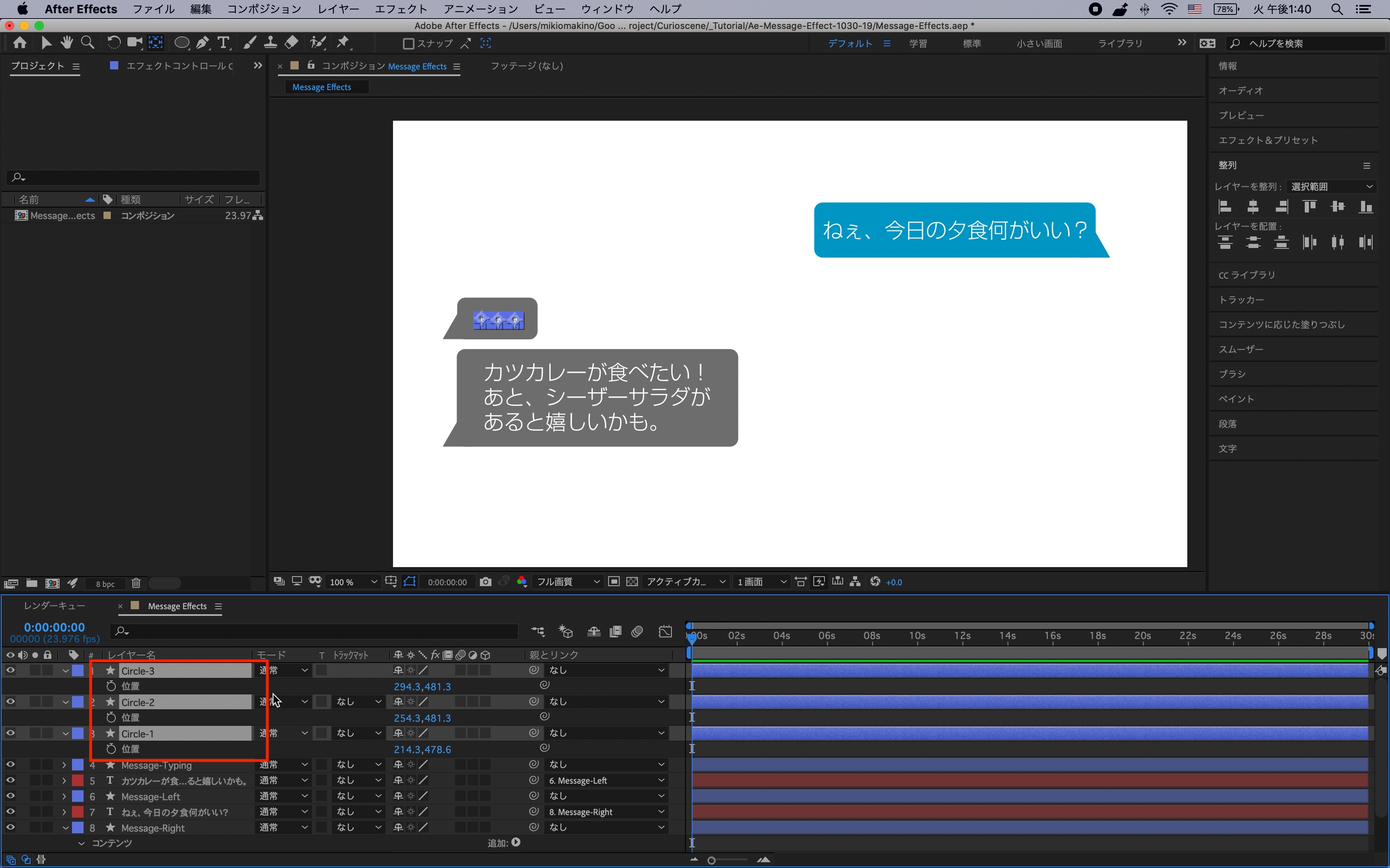 シェイプレイヤーはわかりやすく「Message-Right」、「Message-Left」と名称を変更しておくと良いでしょう。