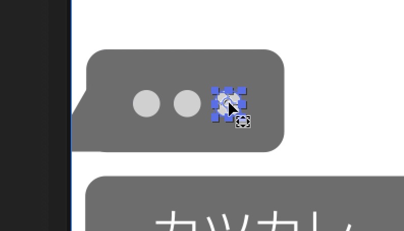 ツールバーから「楕円形ツール」を使って、小さい円形のシェイプを追加し、シェイプを複製して吹き出しの中央に収まるように配置します。