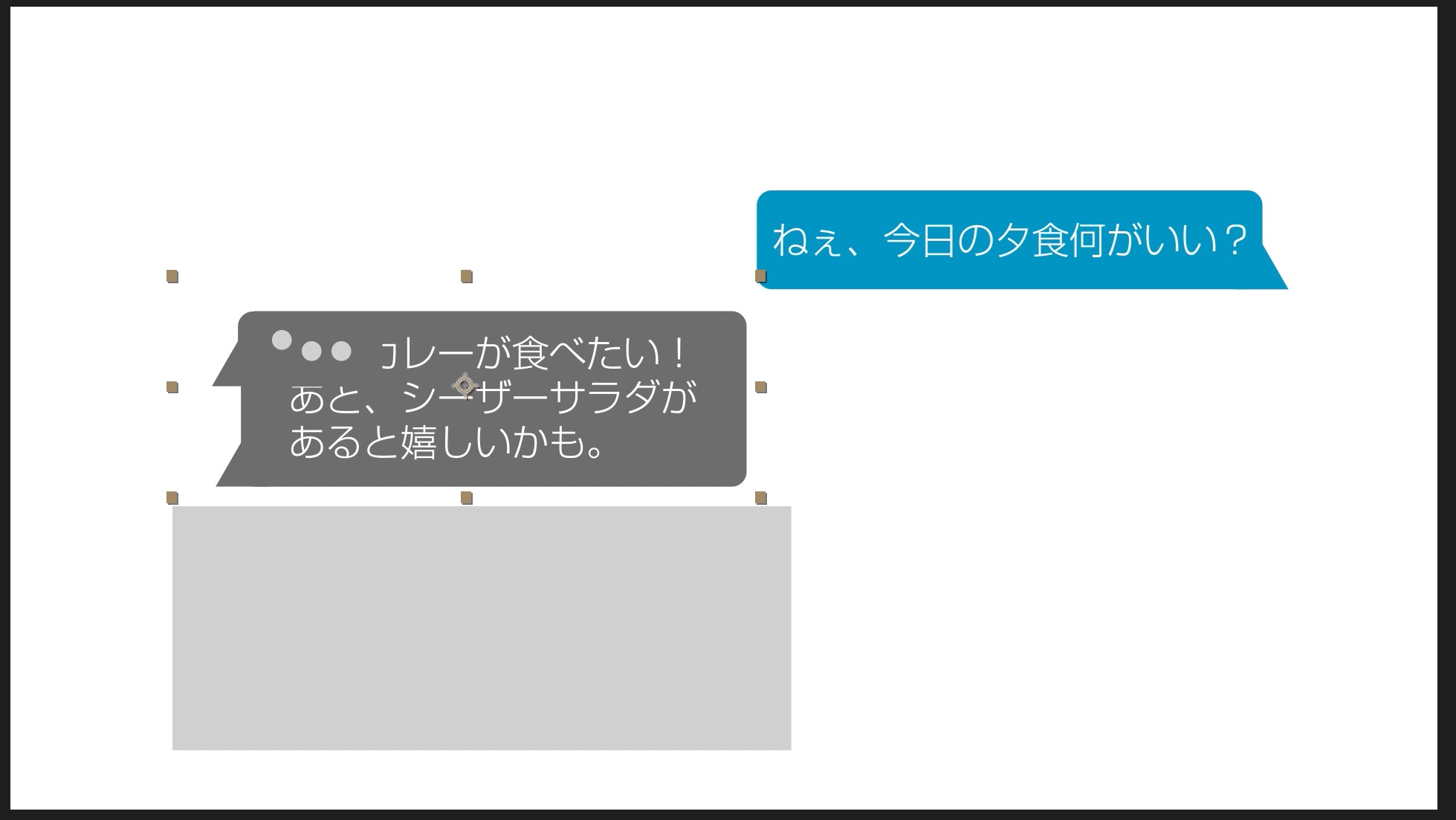 ひとまず、メッセージが収まるサイズの長方形を作成し、メッセージのレイヤーより下に配置し、塗りの色を調整しましょう。