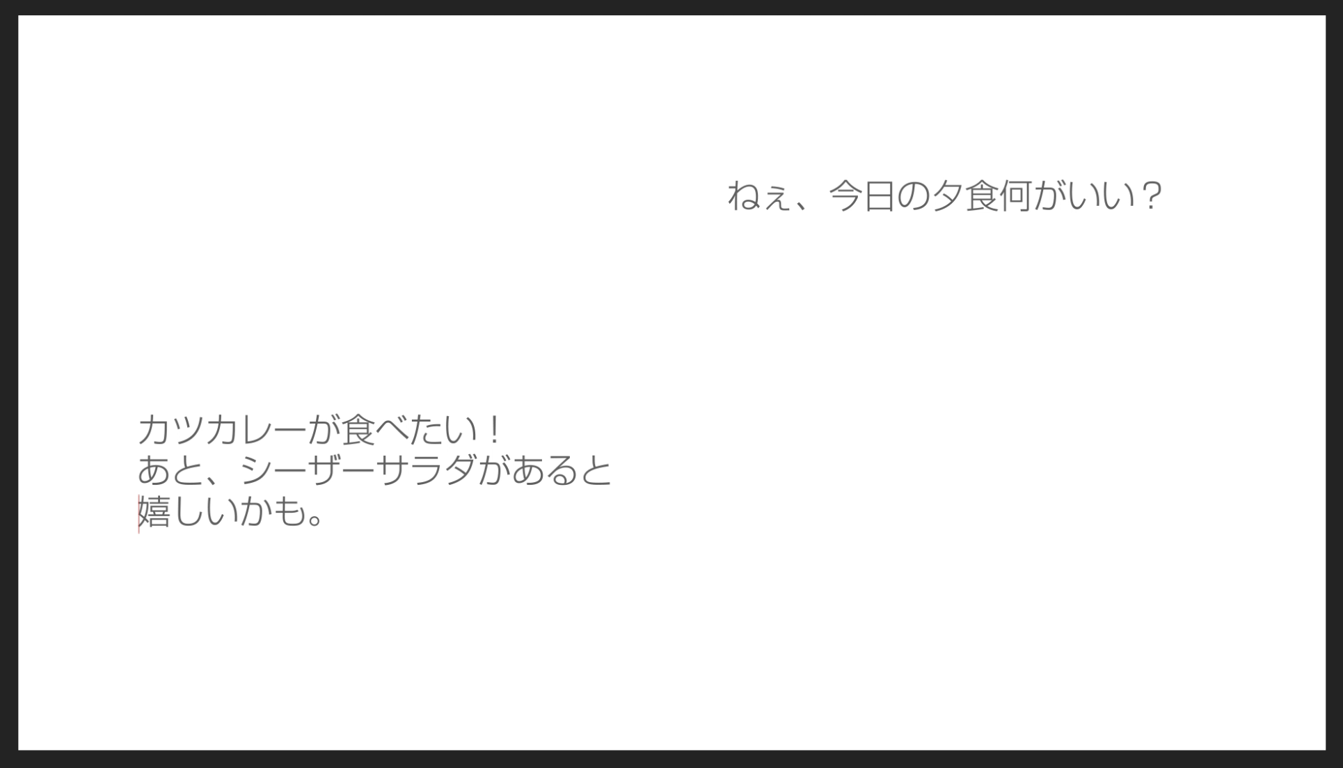 最後は入力中の吹き出しと左の吹き出しがタイミング良く現れるようにキーフレームの調整を行えば完成です。