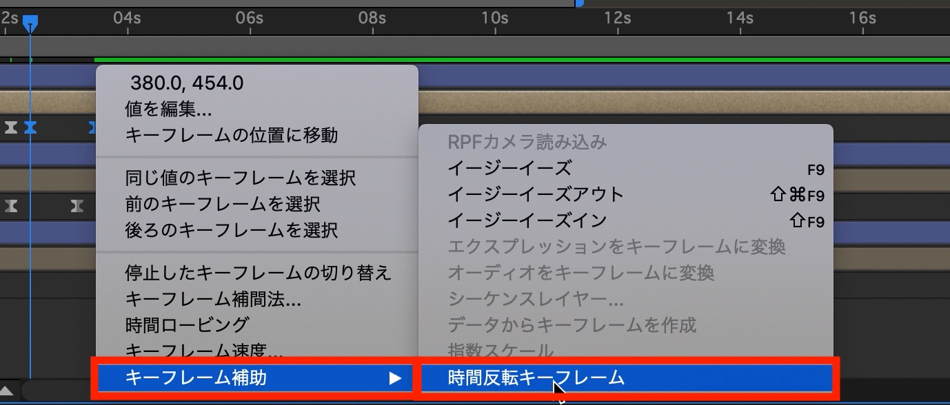加えて「F9(macOSはFnキー同時押し)」でイージングを追加。必要に応じてグラフエディタで細かい調整を行うと良いでしょう。