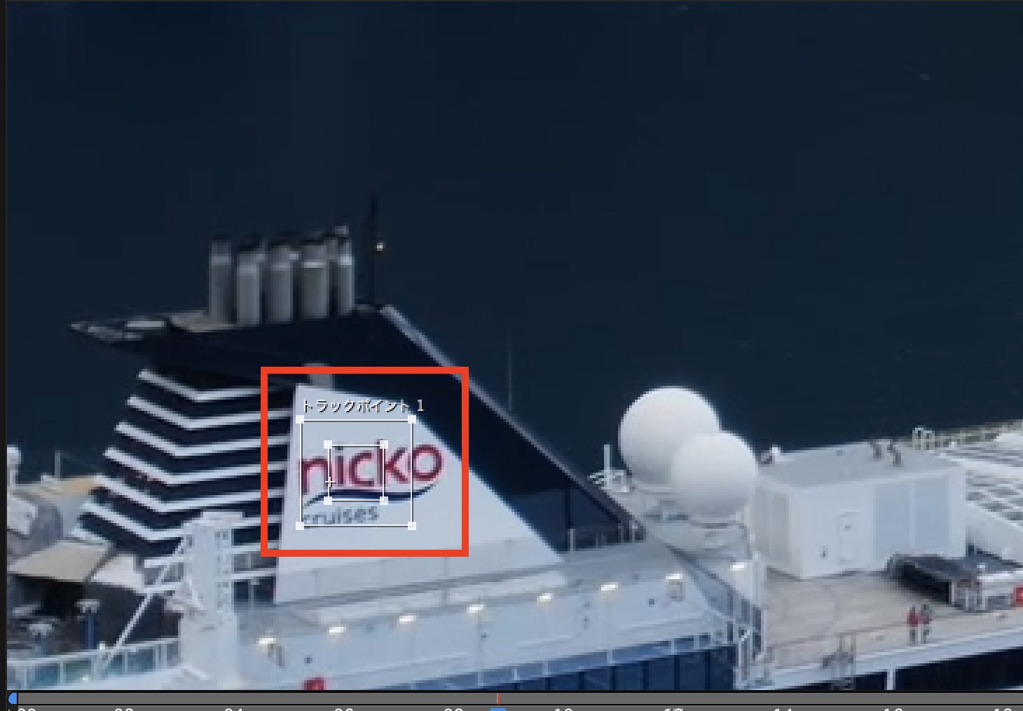 今回は船の上部にある煙突のロゴにトラッキングポイントを設定しました。