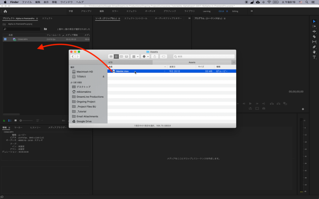 Premiere Proなどに読み込む