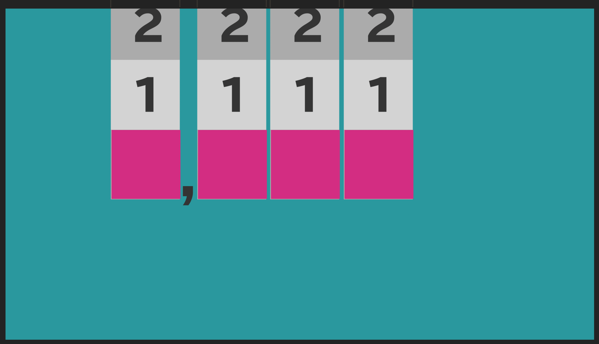 「Numbers-」、「Matte-Numbers-」と数字のテキストレイヤーを少しずつずらしていき、「Numbres-」のレイヤーが途切れた部分にその表示する数字のテキストレイヤー現れるようにします。