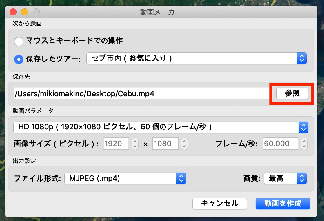 ツアーを保存しただけでは動画形式として書き出されていないので、書き出し作業を別途行う必要があります。