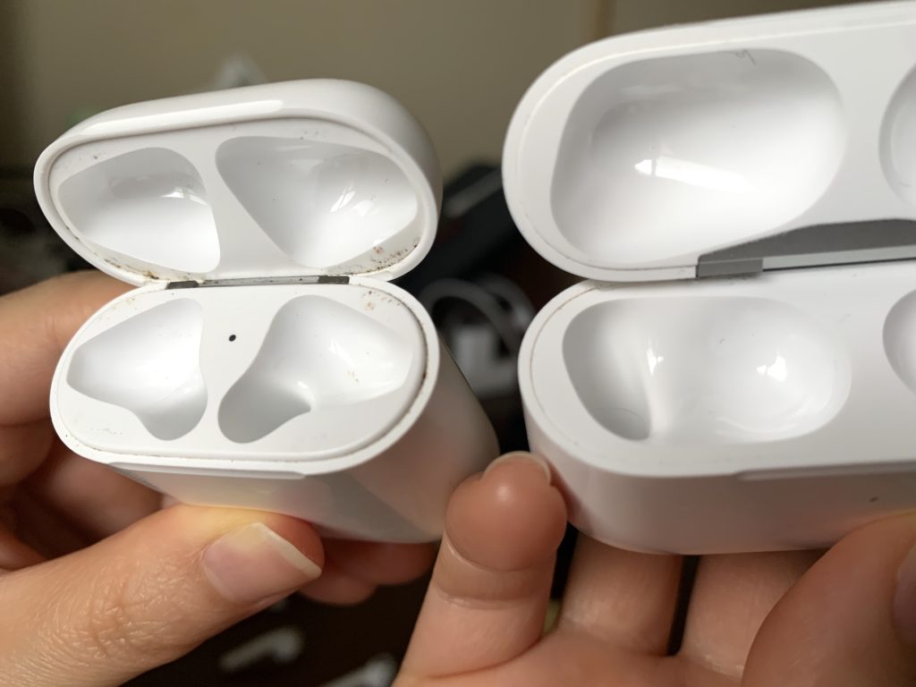この砂鉄はポケットの中に入れる事などで発生する現象によるものですが、AirPods Proのケースを見てみるとこの部分が改善されたのか、AirPodsに比べるとだいぶマシになりました。