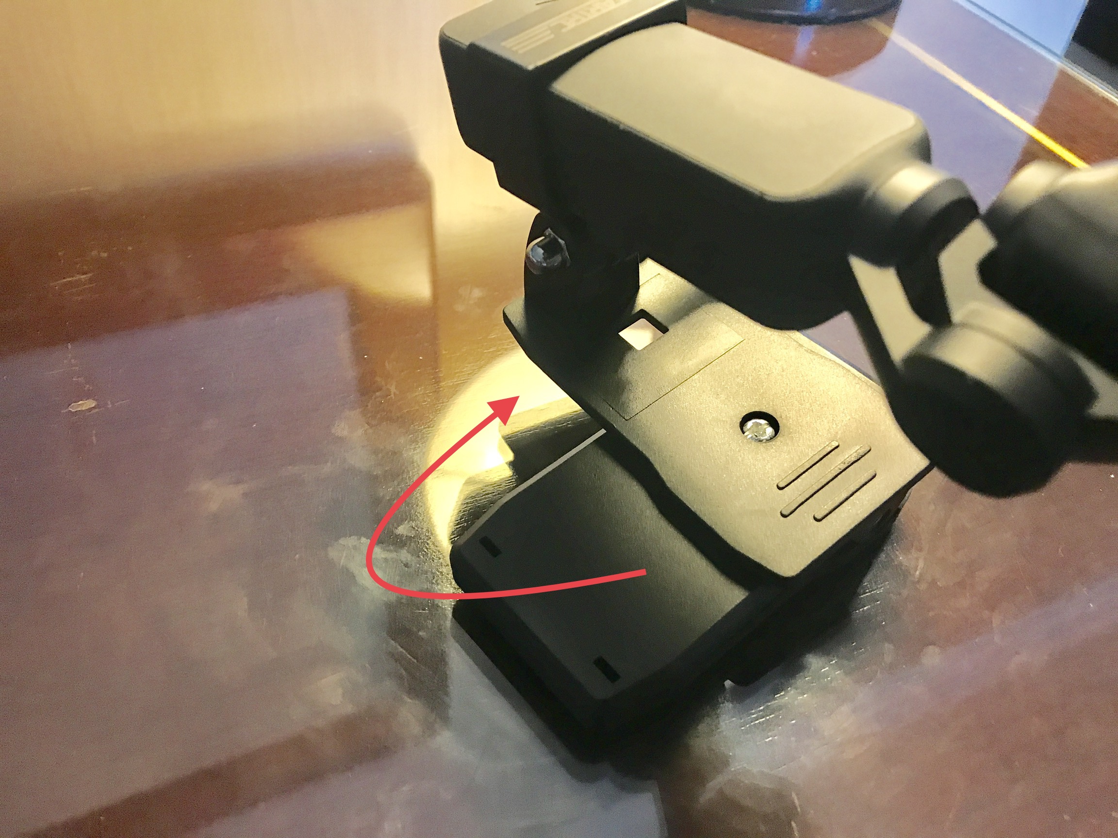 こうする事でOsmo Pocketが縦向きになり、手で持つのと同じ様になりました。