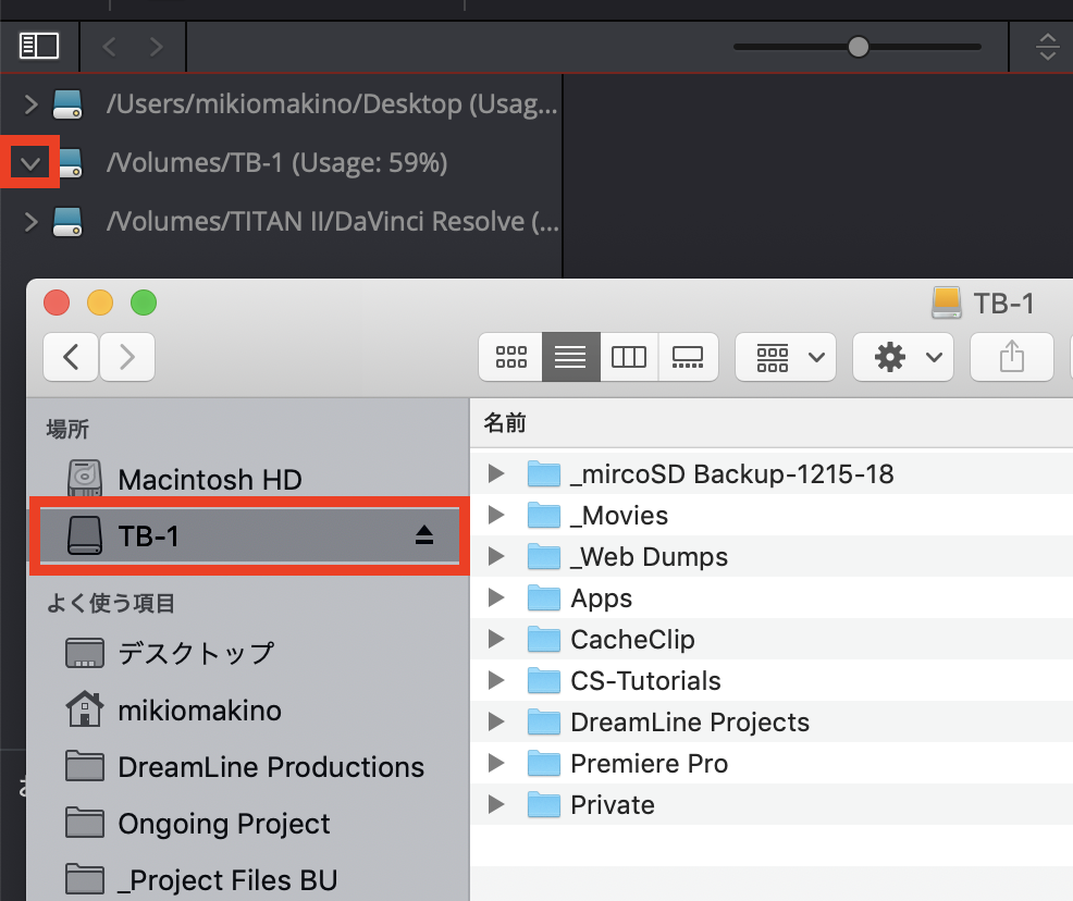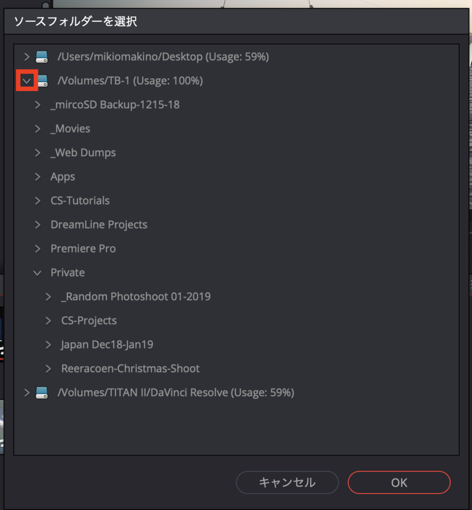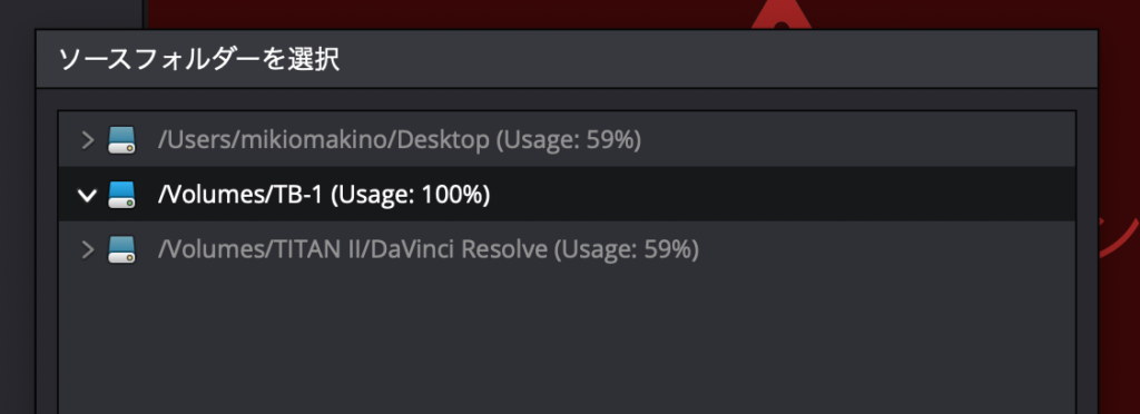 Premiere Proを使い慣れている方からすれば少々面倒な仕様ではありますが、HDDを接続しても該当のフォルダを表示できない場合はDaVinci Resolve側でHDDが認識されていない疑いが高いので、アプリを再起動させると良いでしょう。