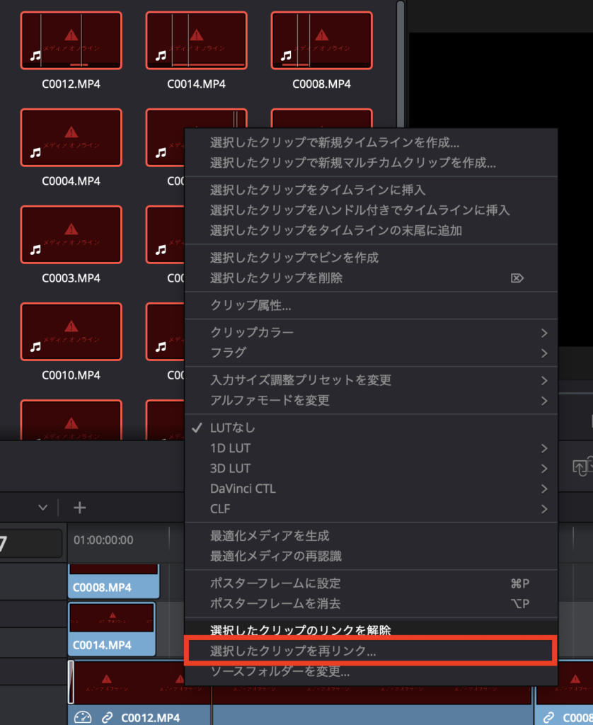 [DaVinci Resolve] メディアオフラインの再リンクとリンクできない時の対処法