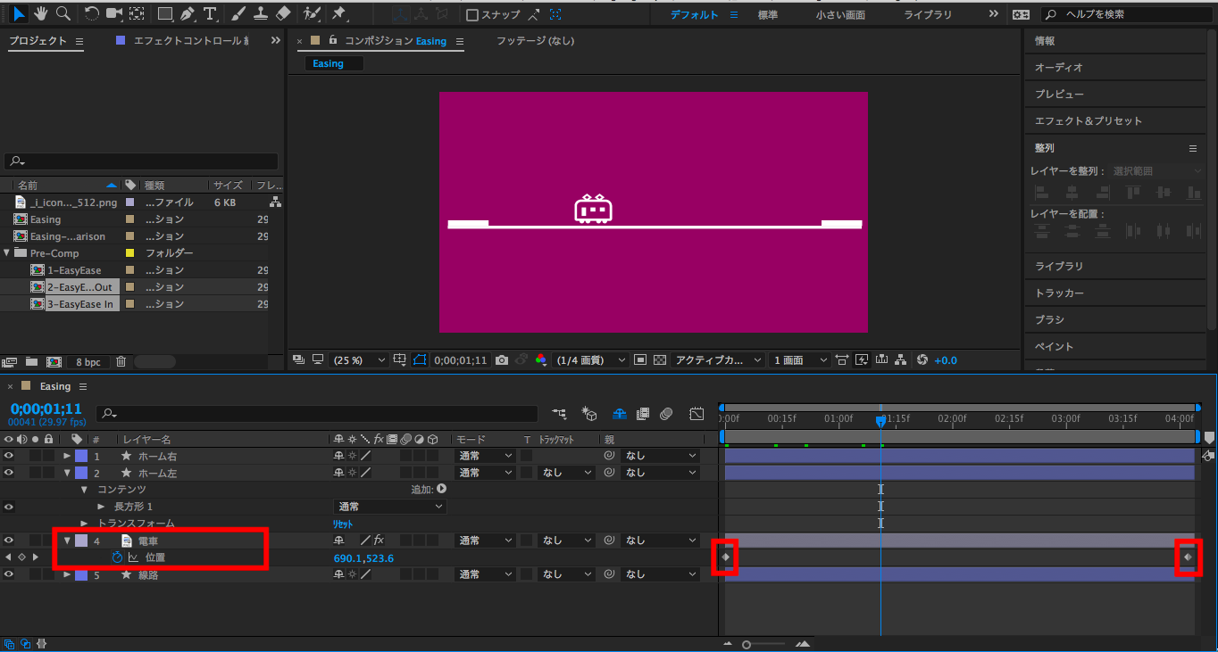 [After Effects] イージング(Easing)を使用して、自然なアニメーションにしてみよう!