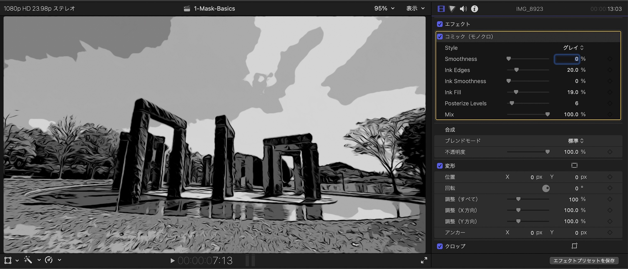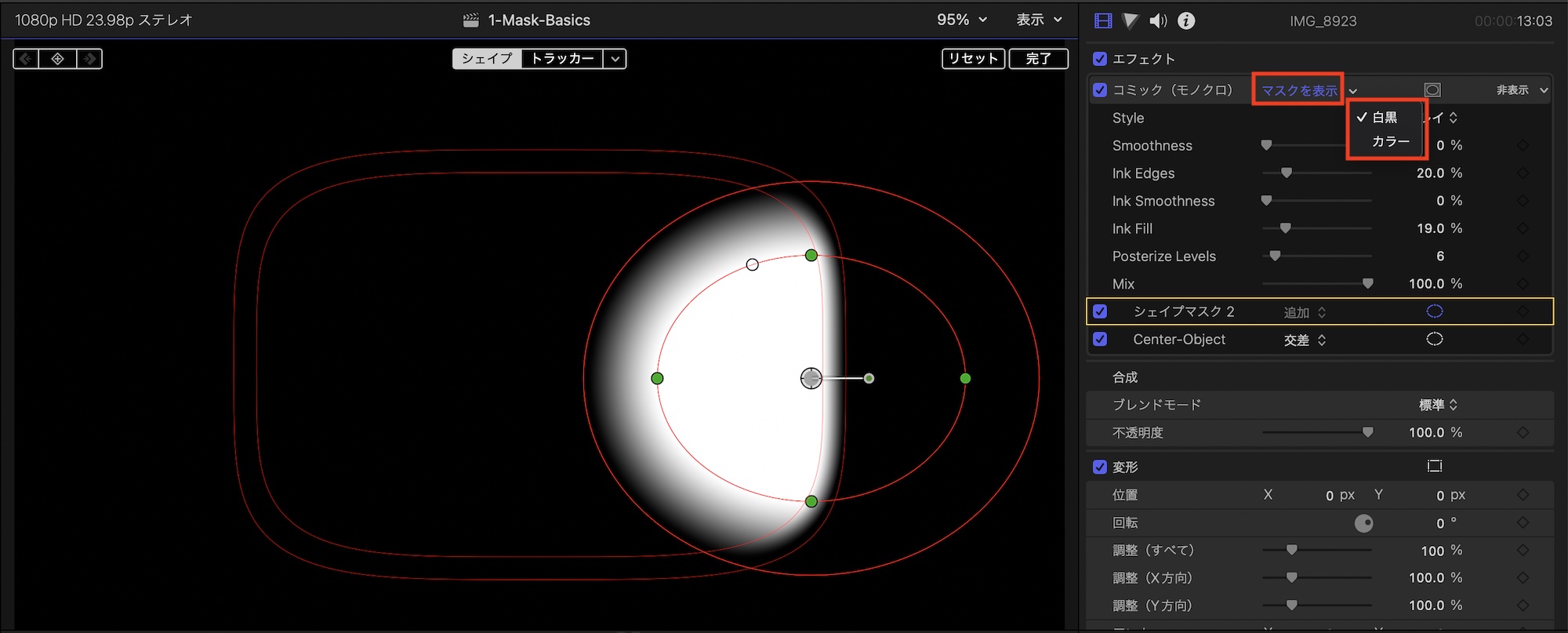 エフェクトの適用とシェイプマスクの追加