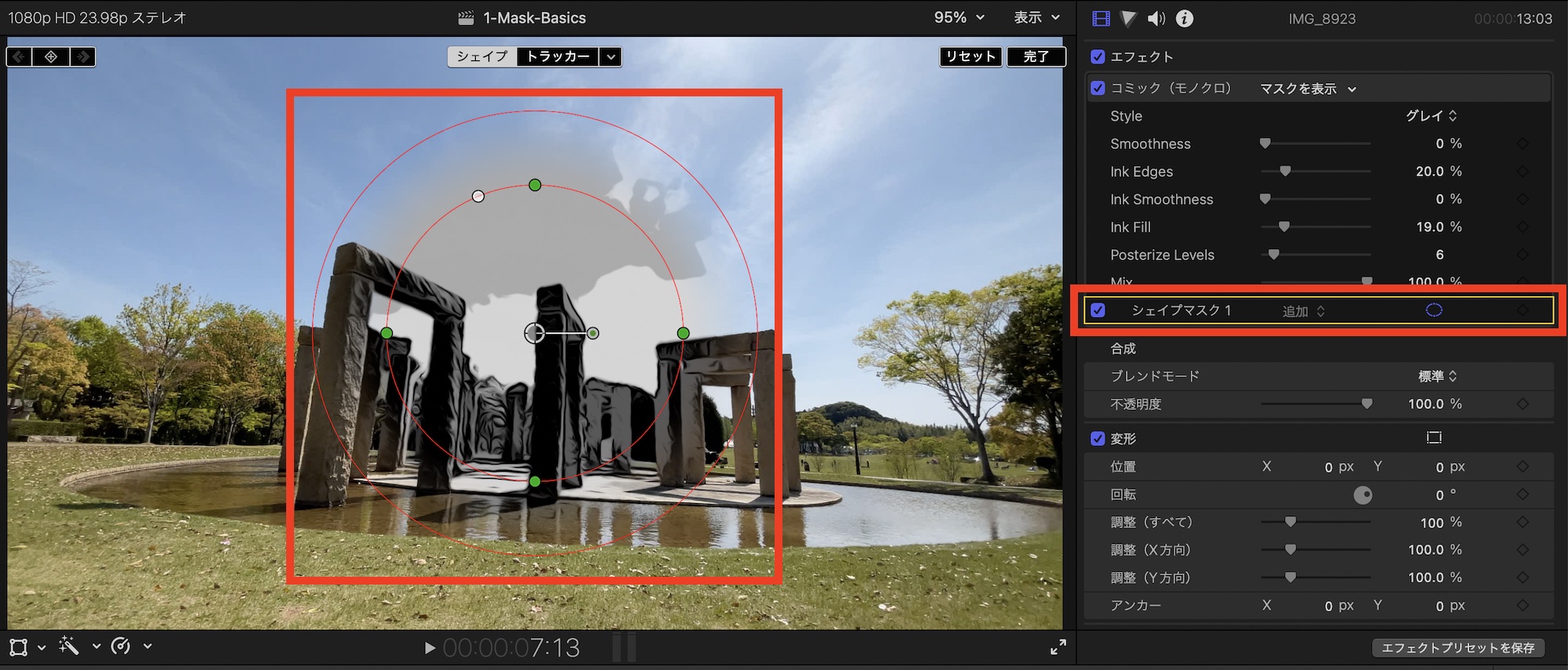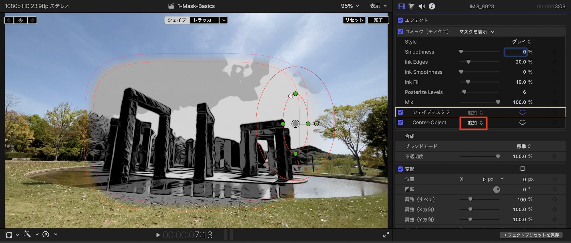 [Final Cut Pro] エフェクトで用意されているマスクを使って、1箇所だけエフェクトを適用する方法