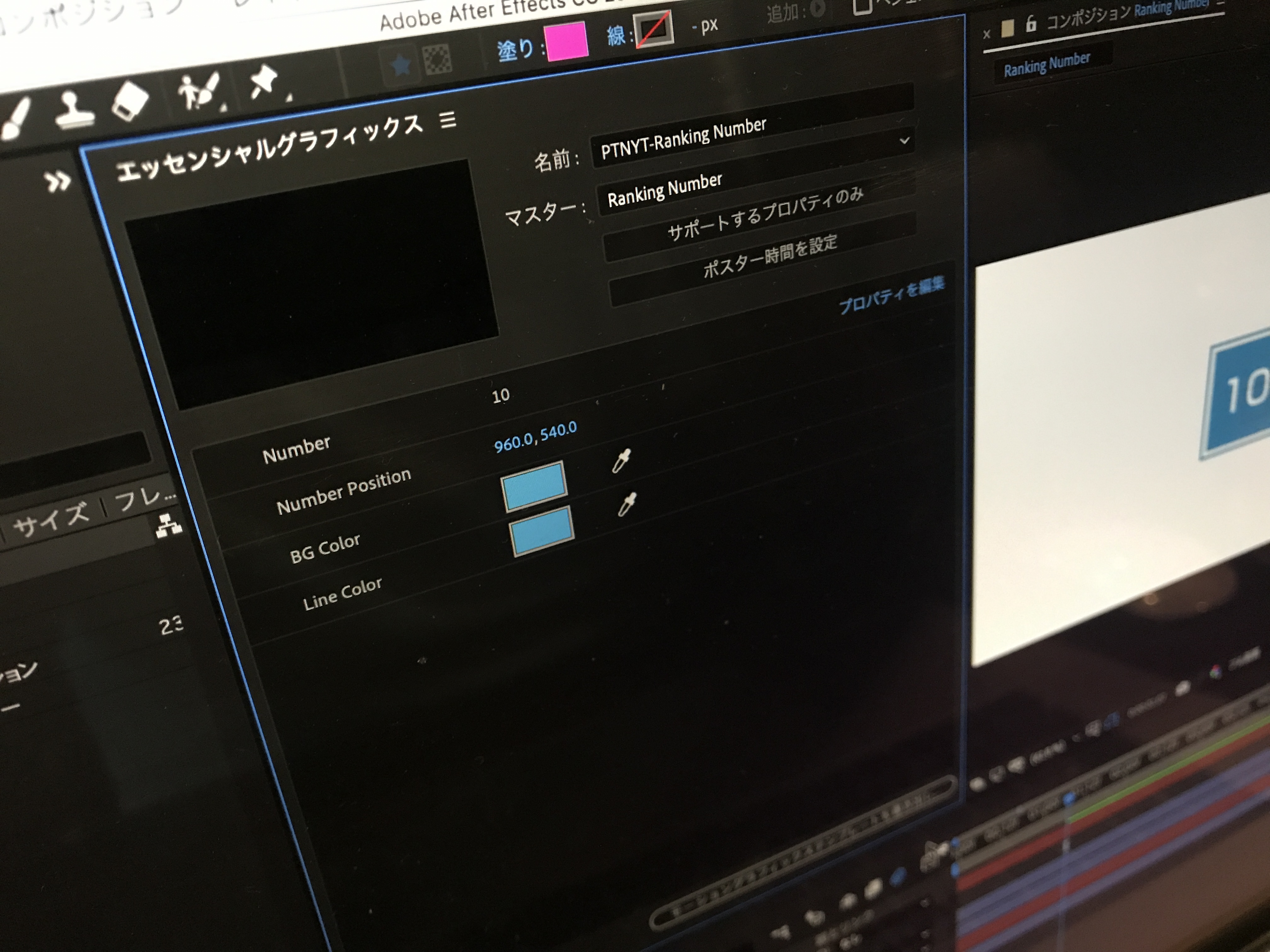 正しいテンプレートになっていれば、After Effectsを開かずとも文字や色、位置などのプロパティを簡単にPremiere Proで編集できるので、筆者も重宝しています。