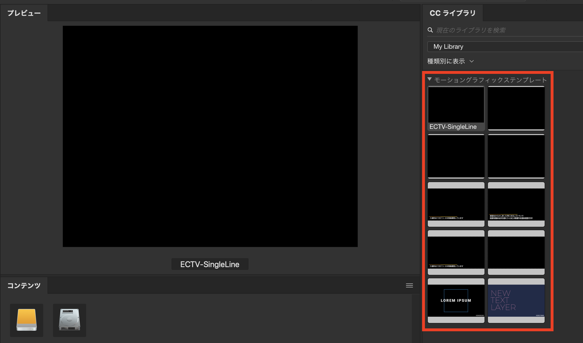 エッセンシャルグラフィックス(モーショングラフィックステンプレート)は利用次第では便利な機能ではあるものの、他の素材との取り扱いが少々違っており、わかりにくかったりします。