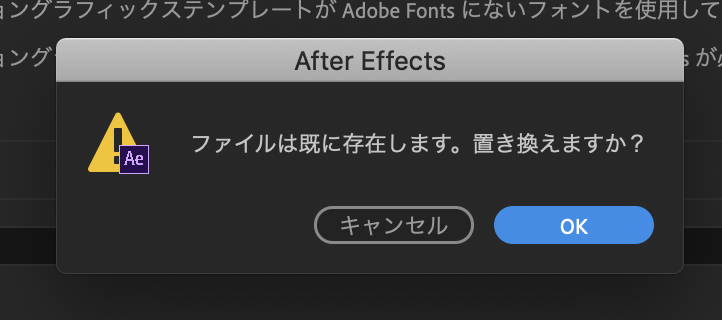 その後で細かい修正などを行なって、再書き出しをする場合は下の写真のように「ファイルは既に存在します。置換えますか?」のウィンドウが現れるため、上書きができます。