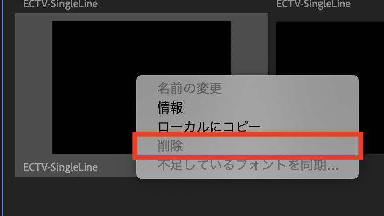 またPremiere Proでは残念ながら「My Library」に保存されたモーショングラフィックスを右クリックしても「削除」のオプションが利用できません。