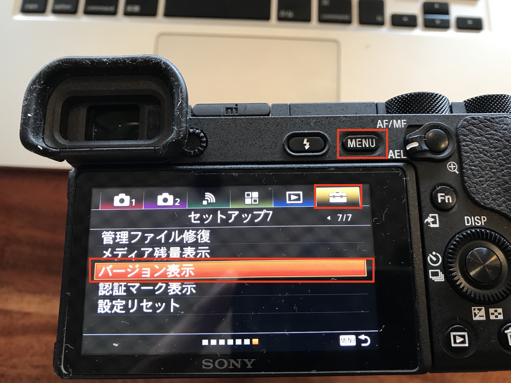 まず、使用するカメラのファームウェアのバージョンをメニューの「セットアップ」、「バージョン表示」から確認しましょう。