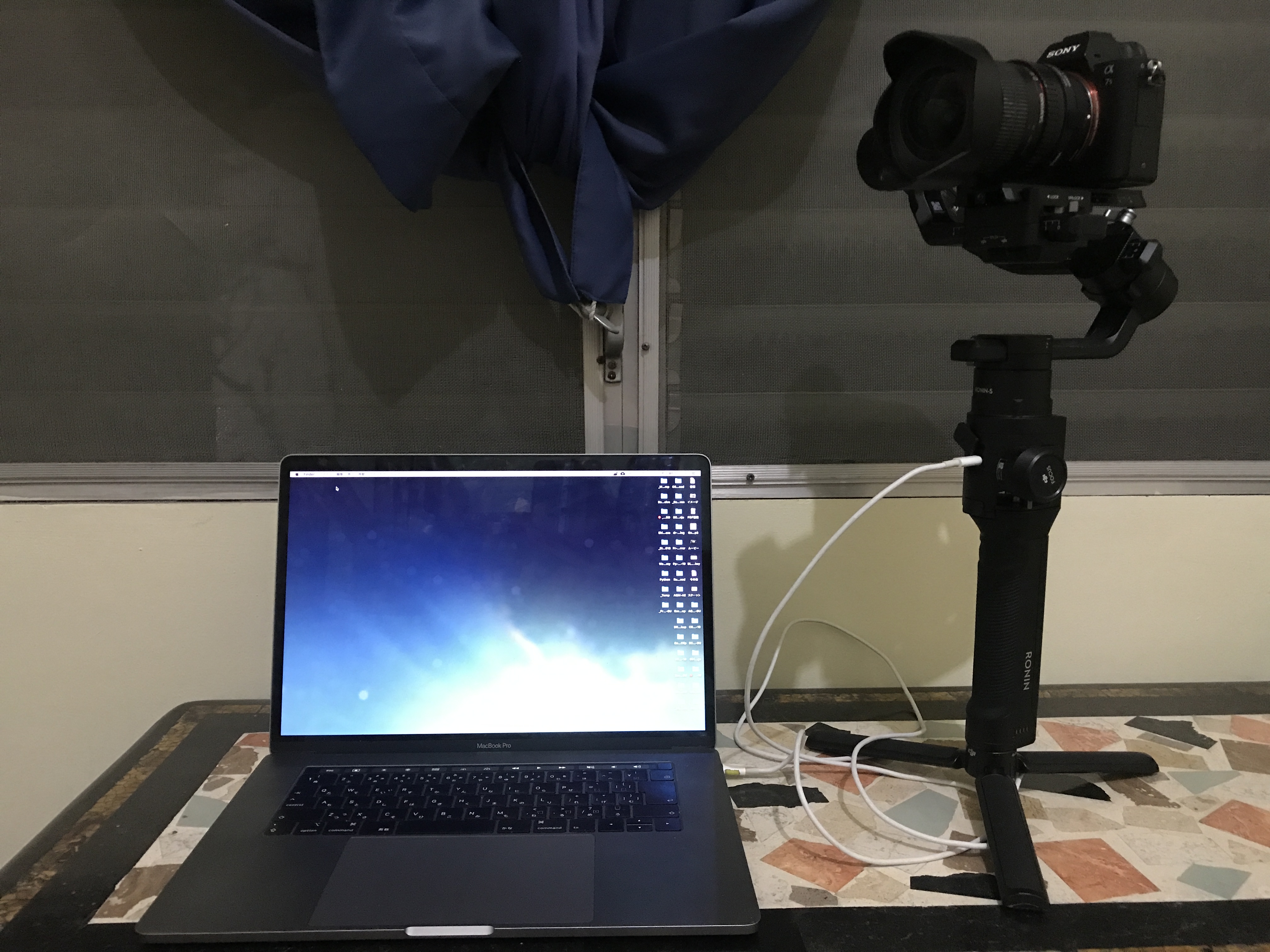 また、Ronin-Sにカメラをマウントさせる必要があります。バランスを取る作業を行うため少々面倒ですが、アップデートする際はジンバルに電源を入れるため、カメラをマウントさせなくてはいけません。