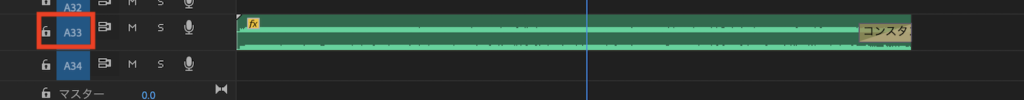 またRushのシーケンスではビデオが2レイヤー、音声はBGMを含めて3レイヤー存在するのですが、Premiere Proに読み込んだ時はビデオ1、2は問題なくレイヤーに表示されたものの、ビデオ2で使用した音声と、BGM用のレイヤーはオーディオ9、オーディオ33となぜか下のレイヤーに配置してありました。