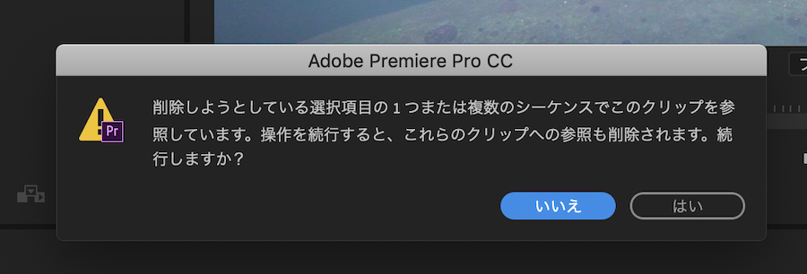 今回の現象は筆者の環境によるものかもしれませんが、試しに「復旧したクリップ」を全て削除した所、「シーケンスに使用されています」の警告が現れ、その下にあったものはシーケンスには使用されていない不思議な現象だったので、ファイルが被っている方はどちらかを削除してみて、影響がないクリップを取り除くと良いでしょう。