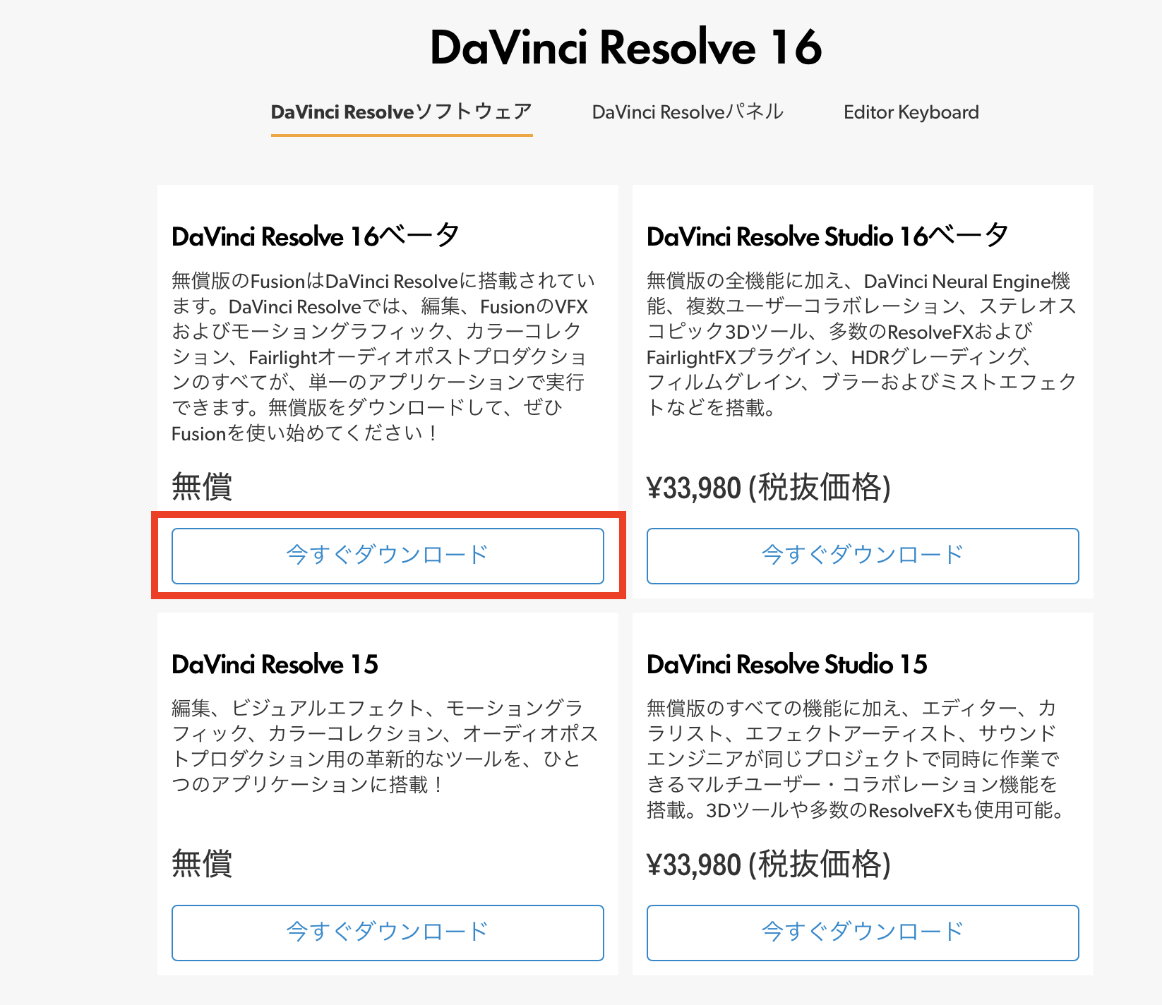 DaVinci Resolve 16の入手、インストール