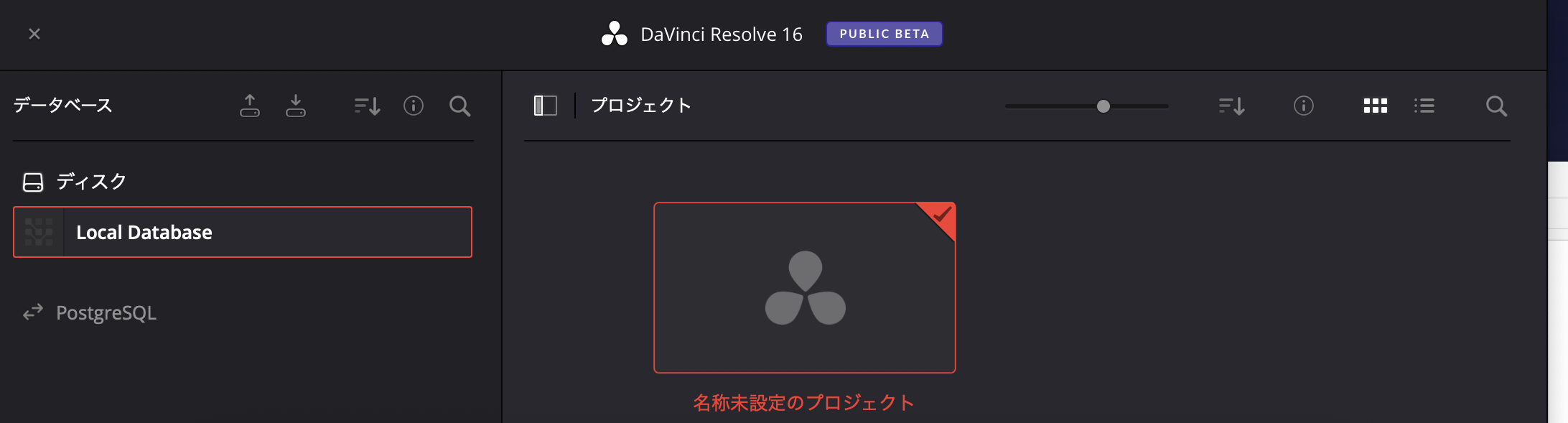 データベースのバックアップ後に初めてDaVinci Resolve 16を開く際、データベースが反映されずプロジェクトが表示されない場合があります。