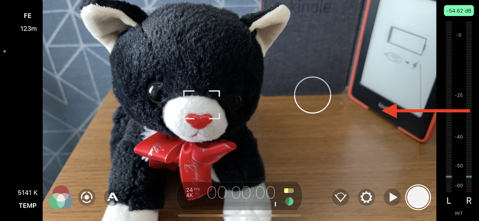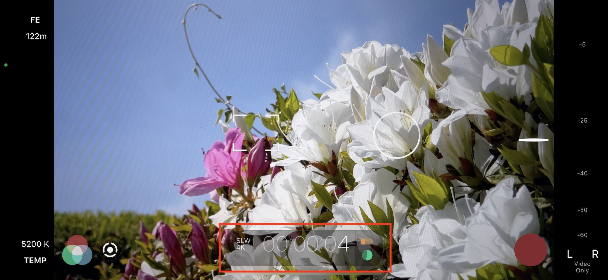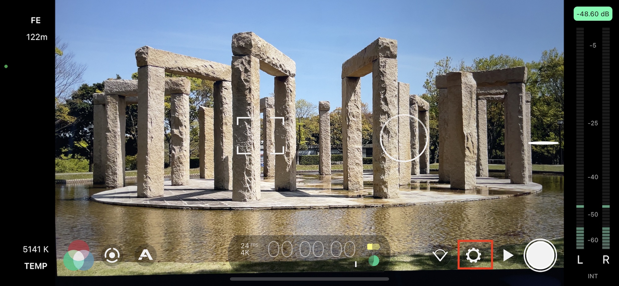 撮影中のタイムコードは中央にあるタイムコードメダリオンから確認できるほか、タイムコードメダリオンをタップすればヒストグラムなどの波形モニターが表示されます。